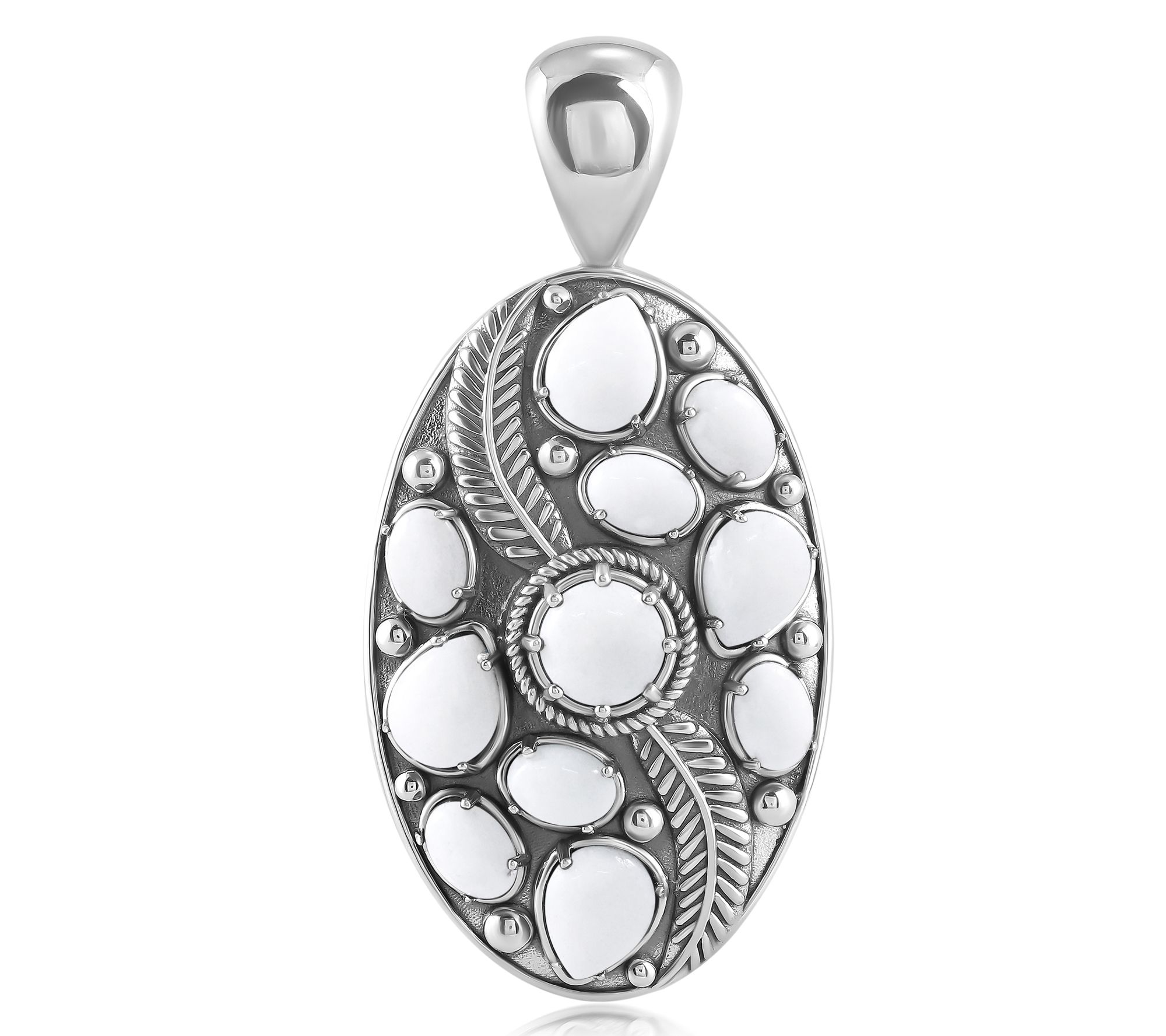 Let your jewelry tell your story with this sterling oval feather gemstone enhancer -- a piece that pairs beautifully with everything from your favorite jeans to a dressier blouse. Its artful design draws inspiration from the beauty of nature, making it easy to personalize your go-to chain or leather cord and add a hint of color and charm to your day. From American West Jewelry.