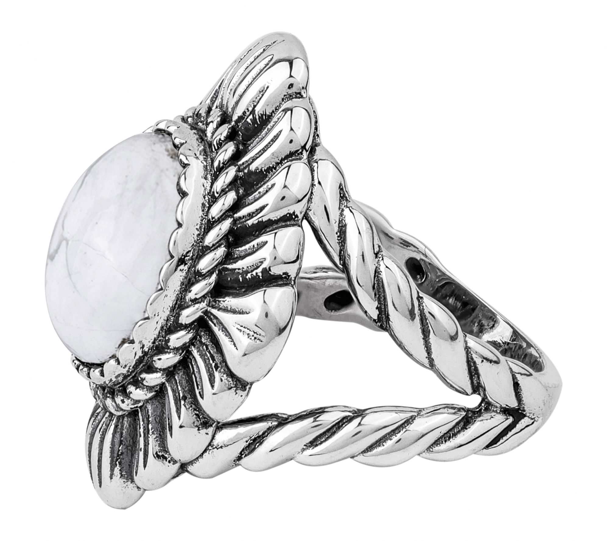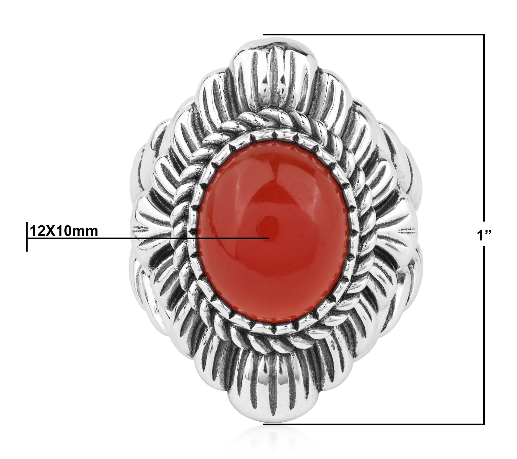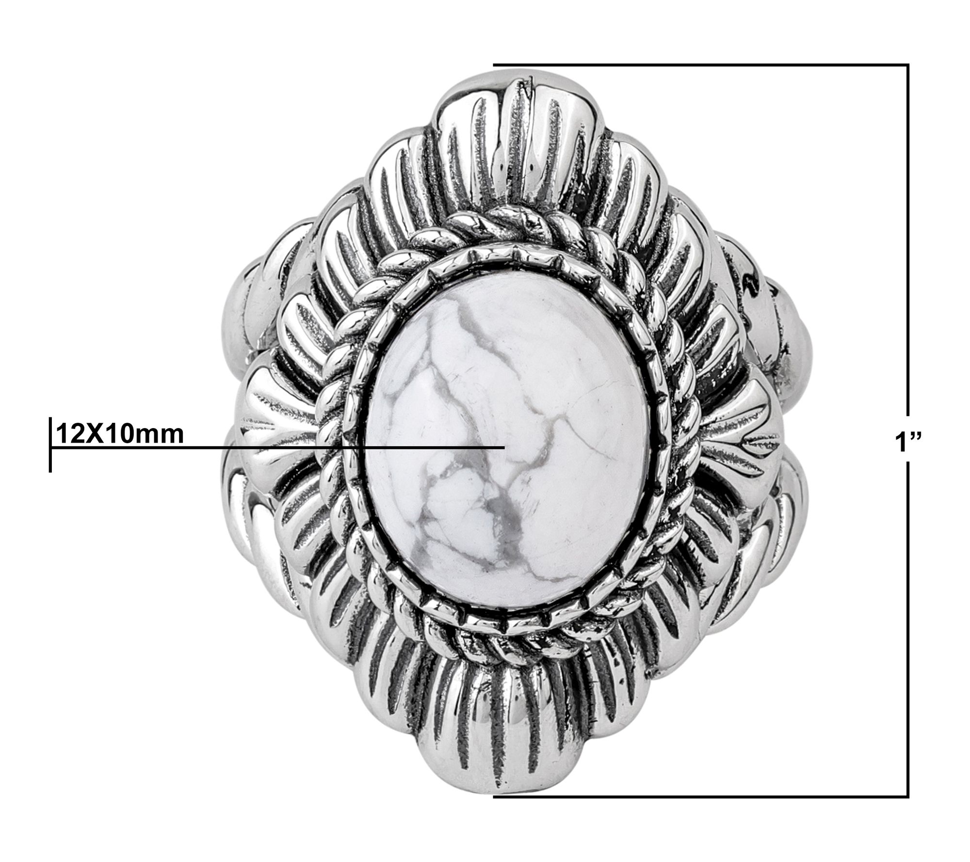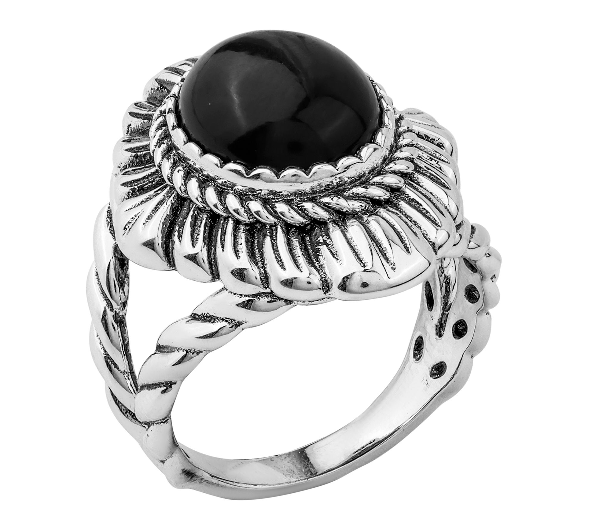 Let your signature style shine with this stunning ring -- an eye-catching oval gemstone sits cradled in an intricately detailed rope and scallop design, creating a look that transitions beautifully from brunch with friends to an elegant evening out. Stack it with your favorite bands or make it the solo centerpiece for an instant touch of southwestern charm. From American West Jewelry.