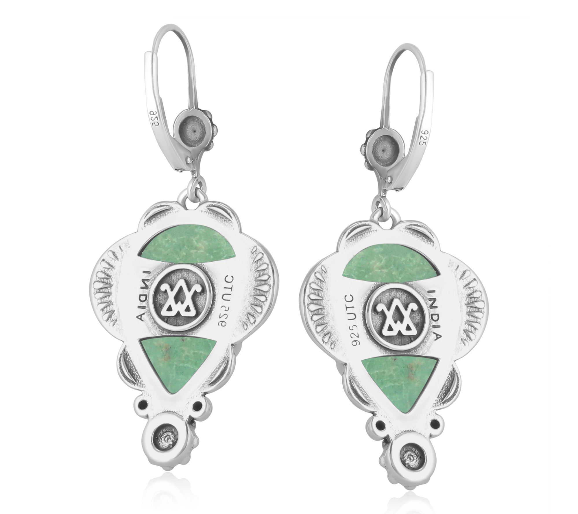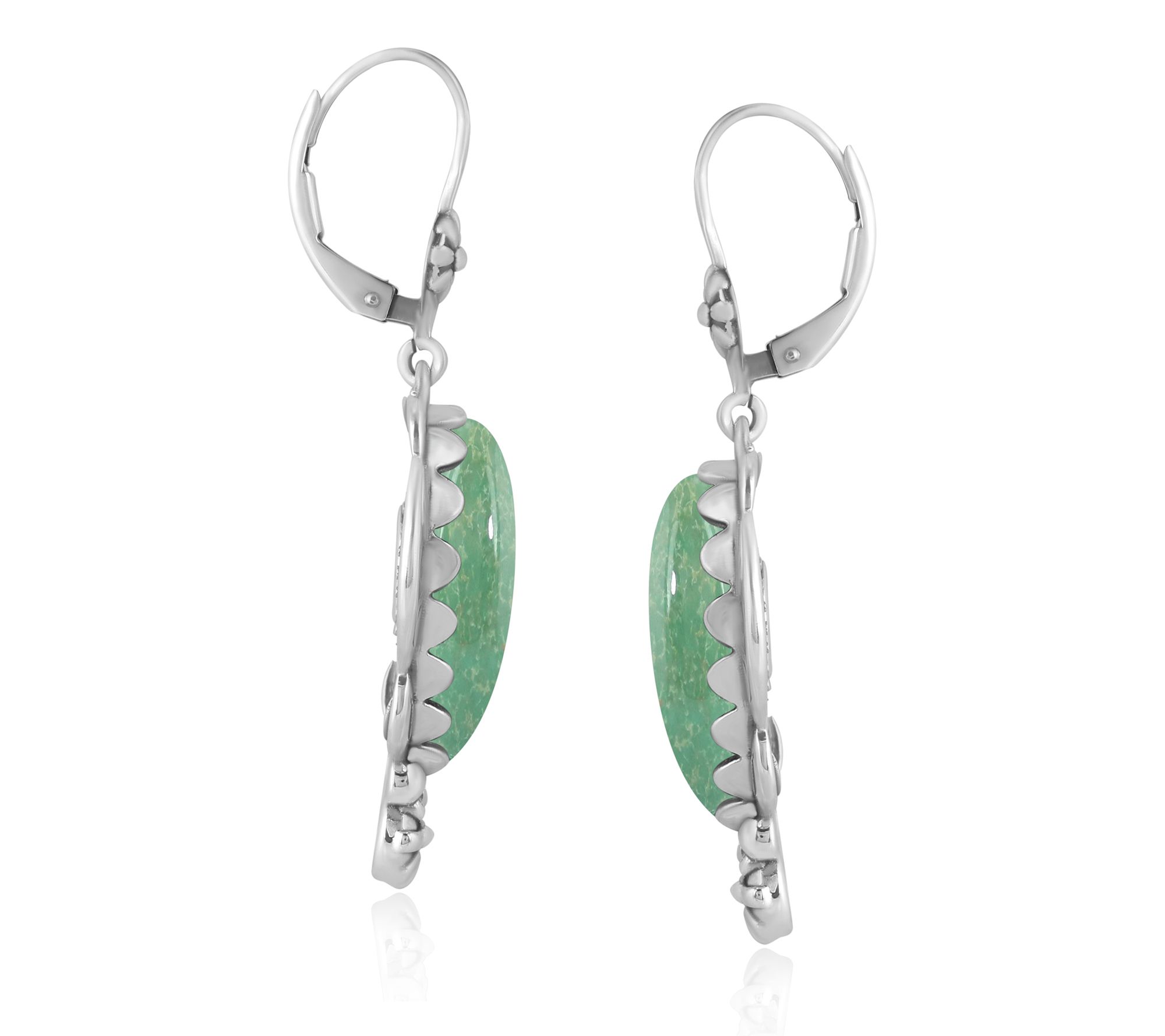 Add a touch of Southwestern charm to your jewelry collection with these sterling silver earrings from American West, featuring a pear-shaped green turquoise cabochon accented with concha flowers. From American West.