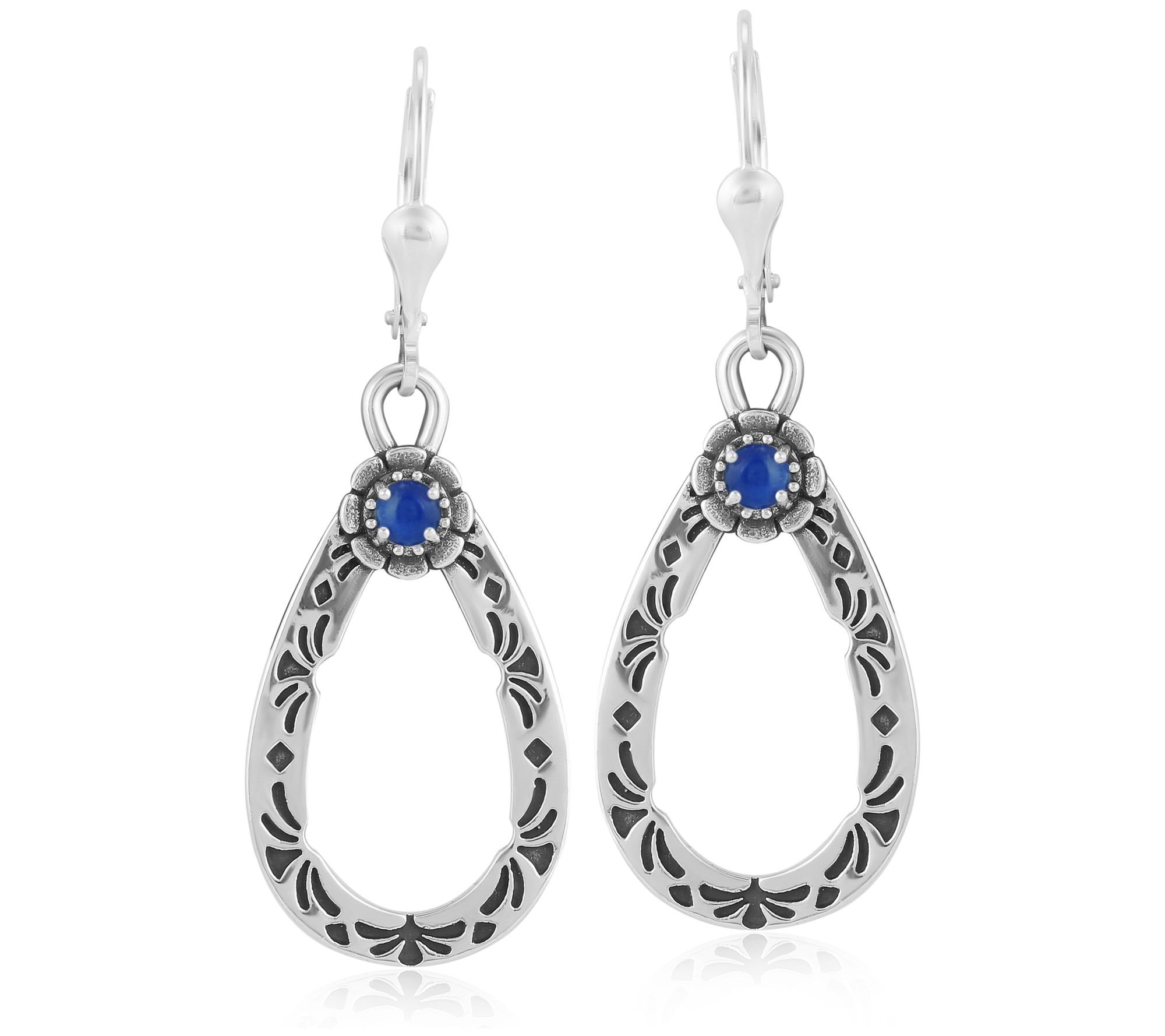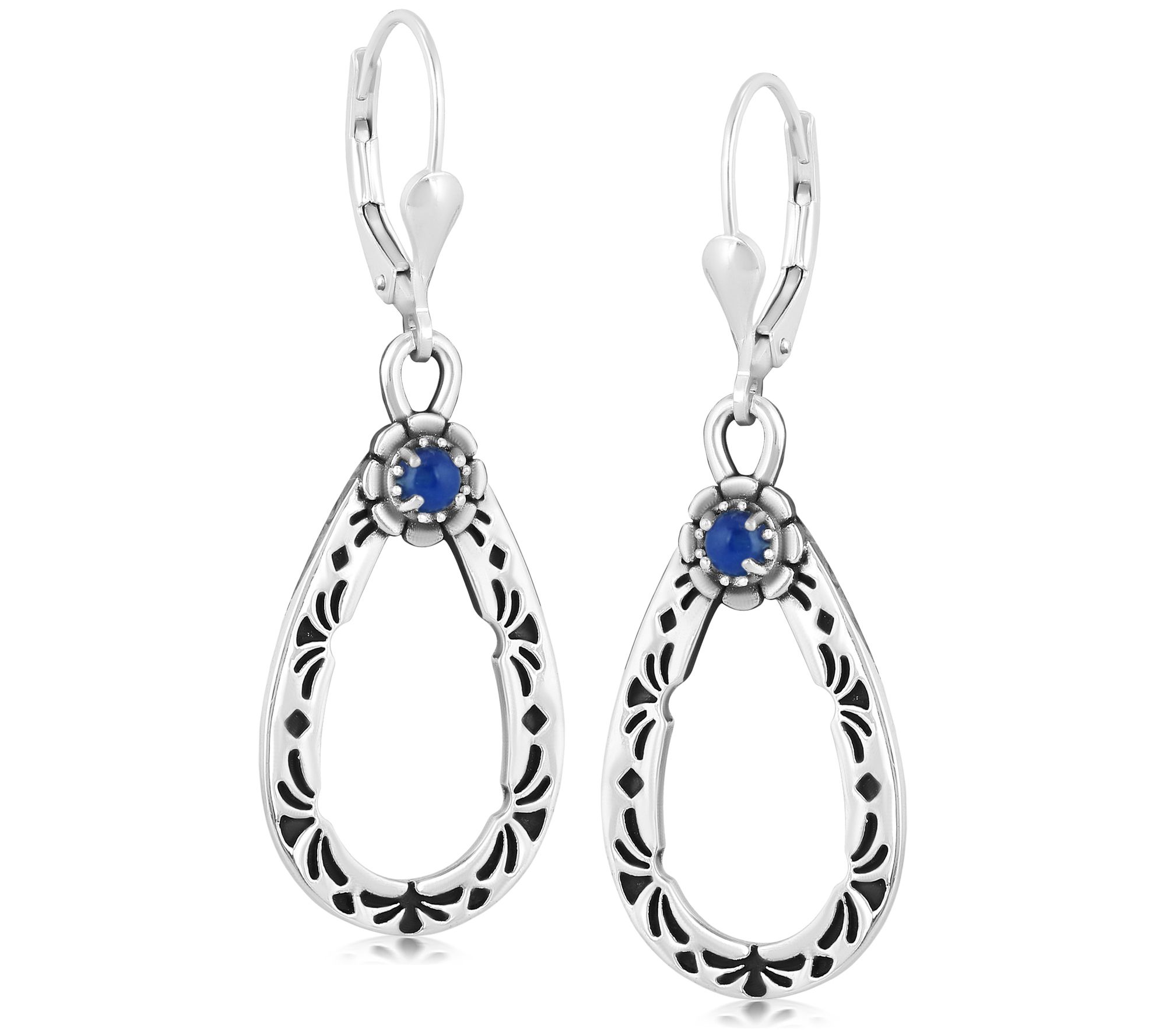 Elevate your everyday look with these American West Sterling Pear Shape Gemstone Dangle Earrings, featuring a captivating pear shape and a round gemstone cabochon at the heart, encased in exquisite sterling silver with an etched design. Whether you're dressing up for a special occasion or adding a touch of elegance to your daily wear, these earrings with their lever back closure are a perfect choice. From American West.