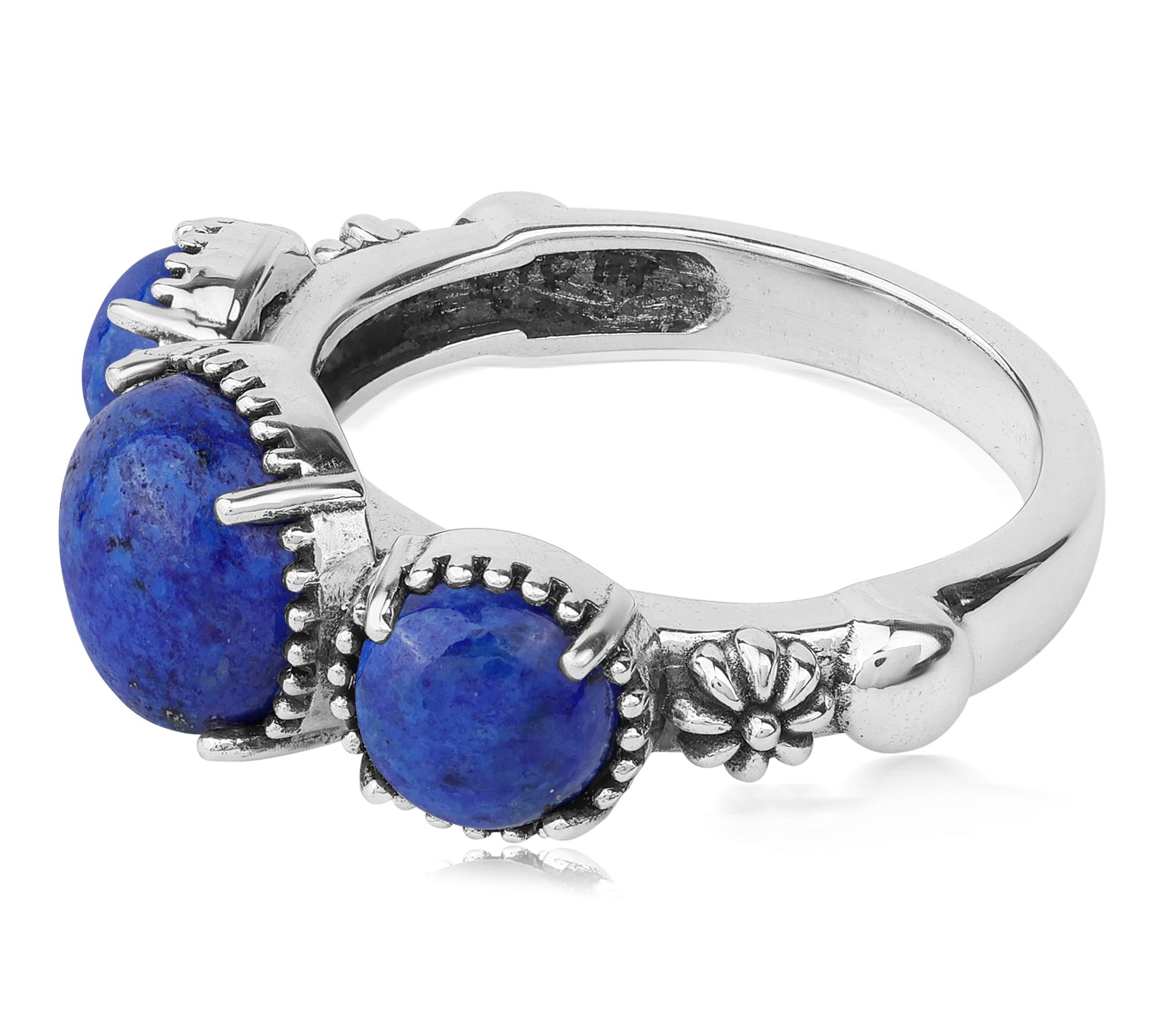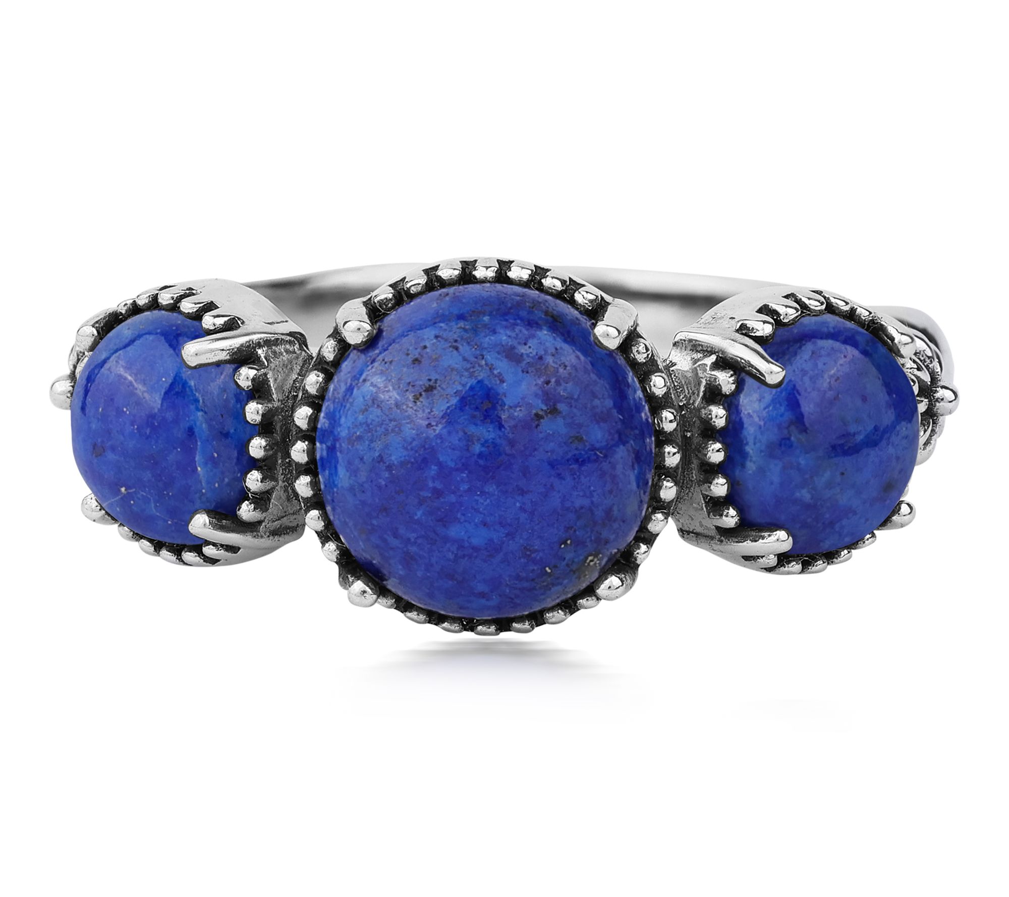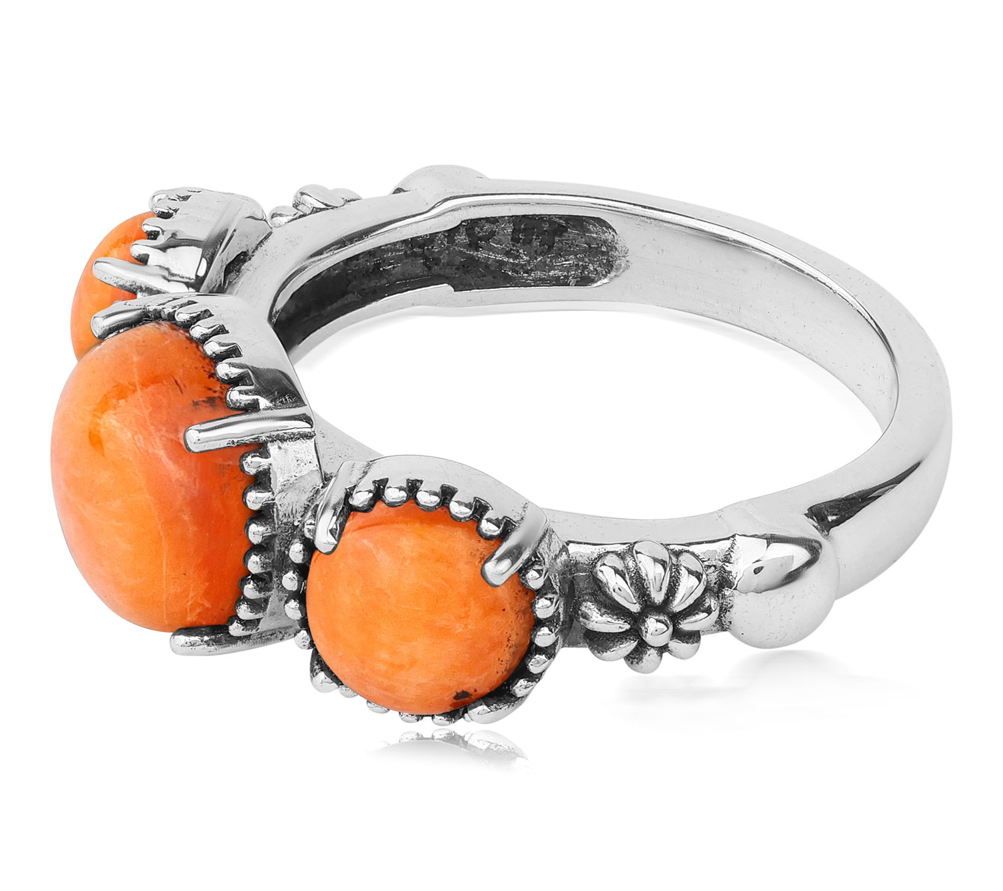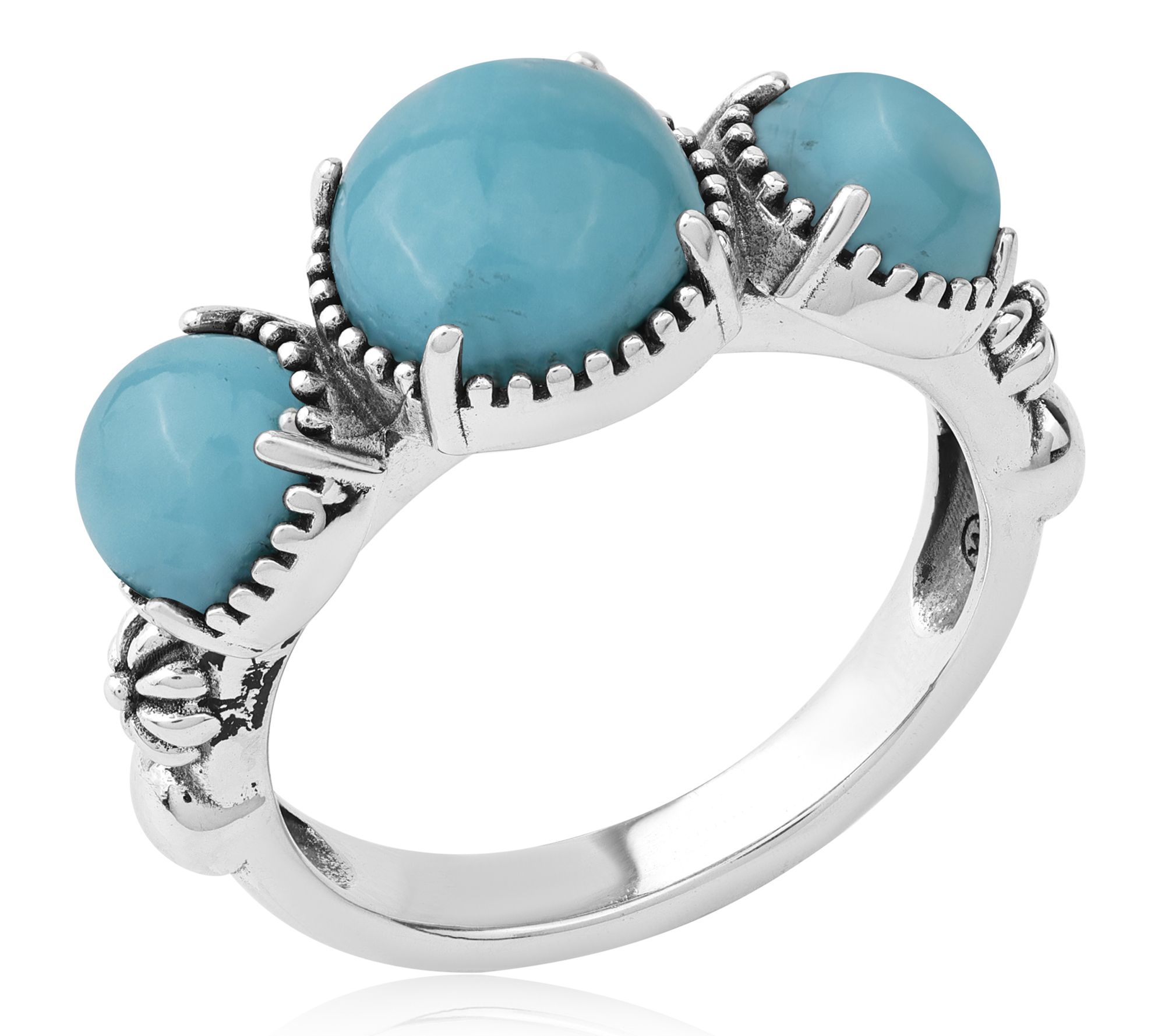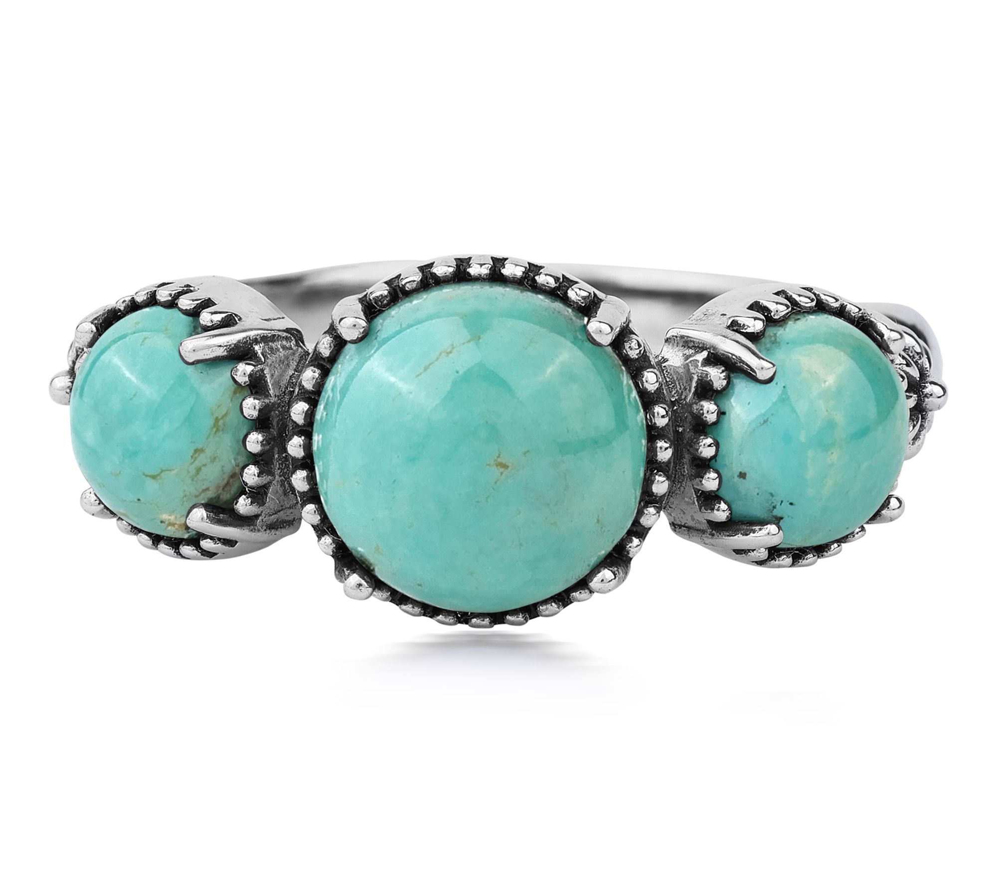 A trio of vibrant gemstones takes center stage on this sterling silver concha ring, showcasing Southwestern-inspired artistry that shines from every angle. Whether you're dressing up denim for a weekend getaway or adding a splash of color to your favorite sundress, its distinctive design brings eye-catching charm to any occasion. From American West Jewelry.