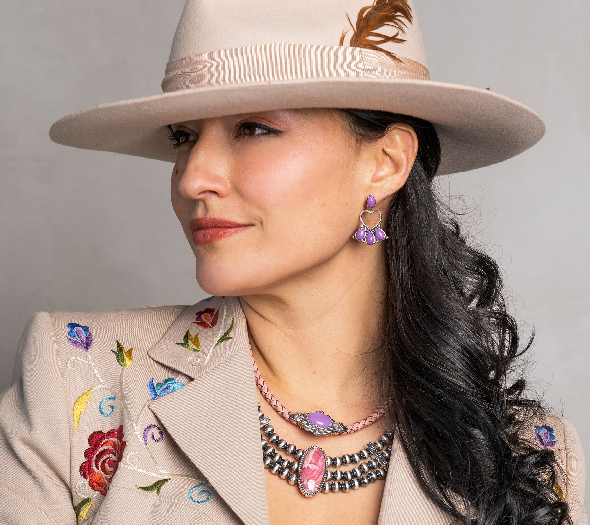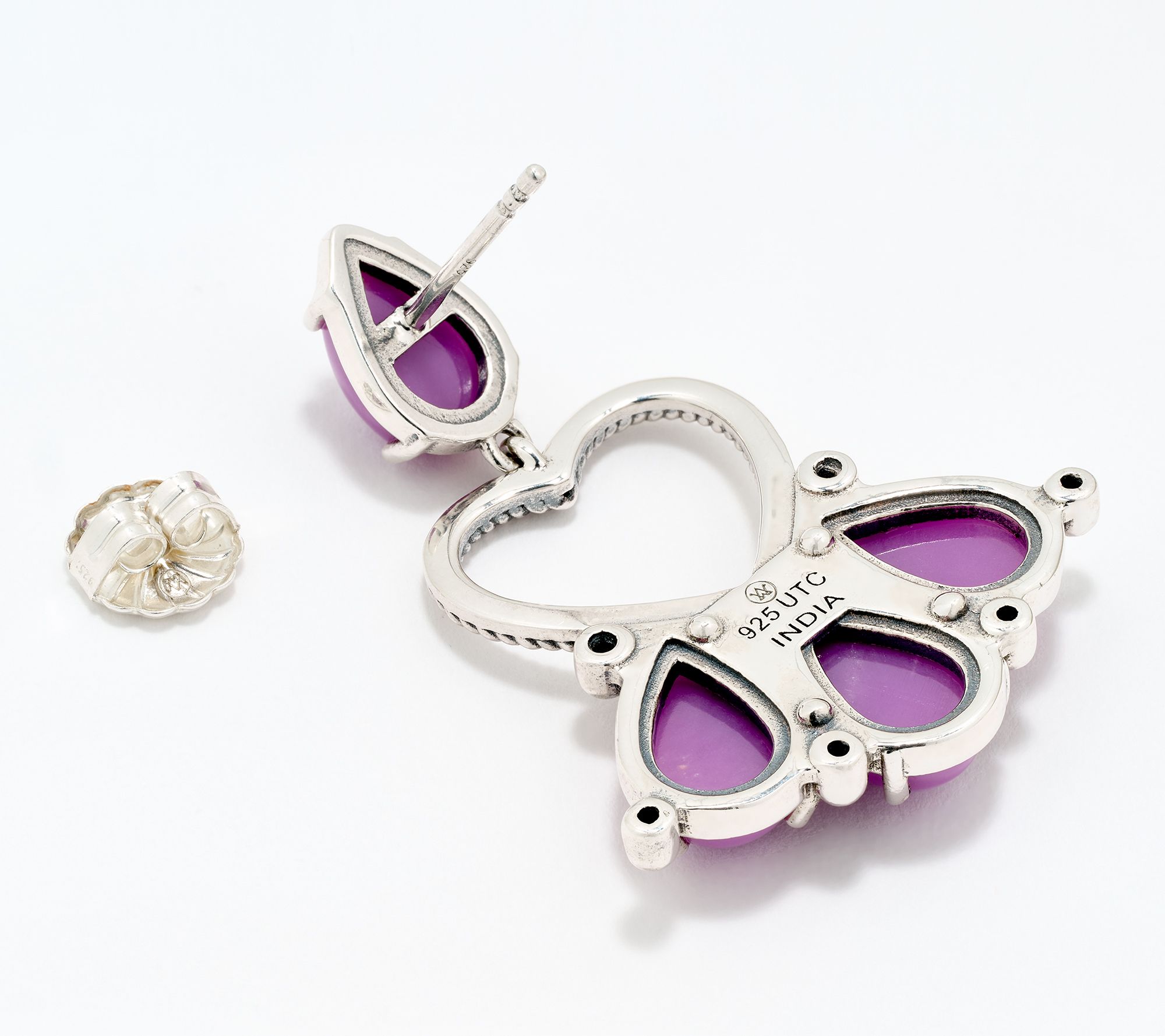 Capturing hearts and compliments, these sterling silver earrings combine pear-shaped gemstone cabochons with a rope open heart shape to create an instantly memorable look. From American West Jewelry.