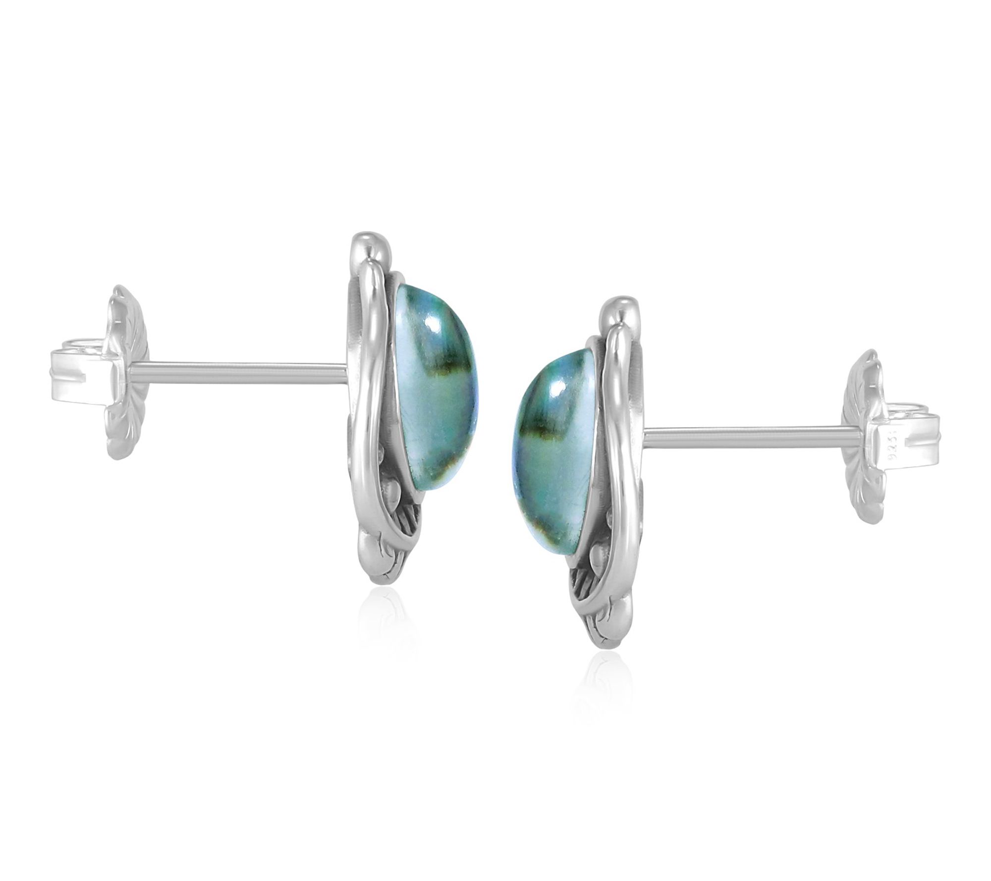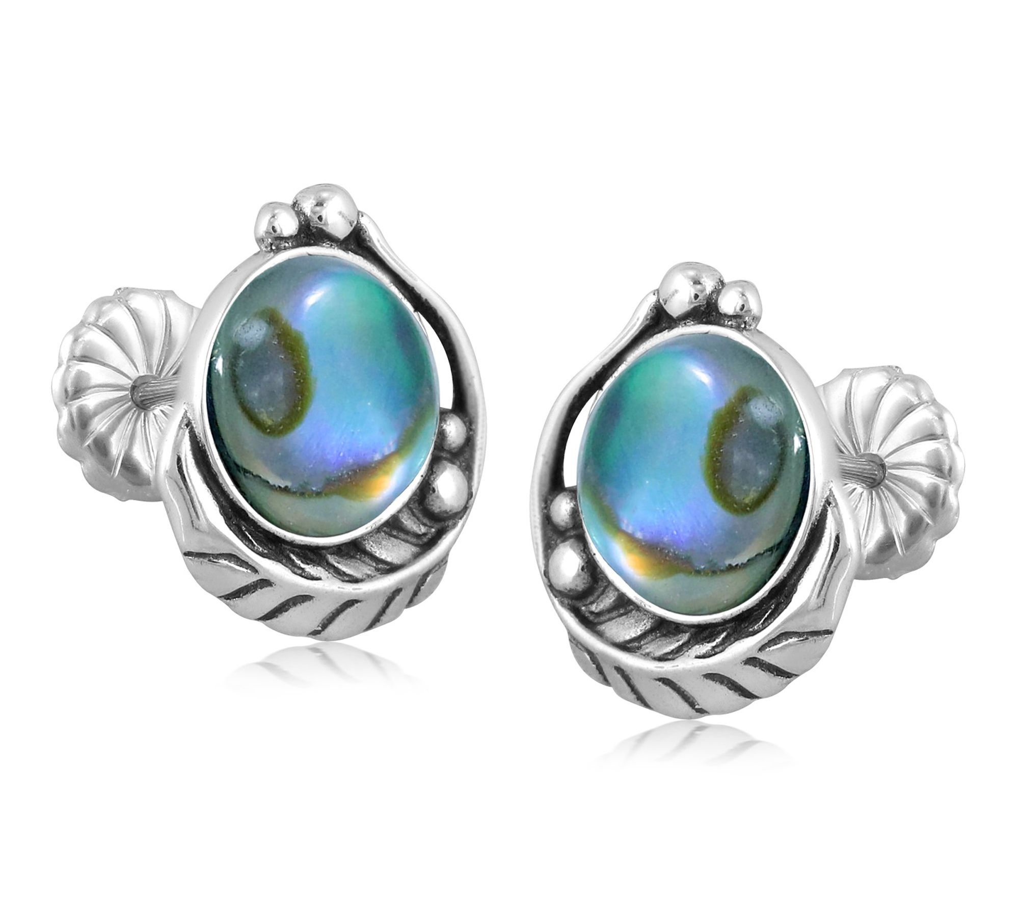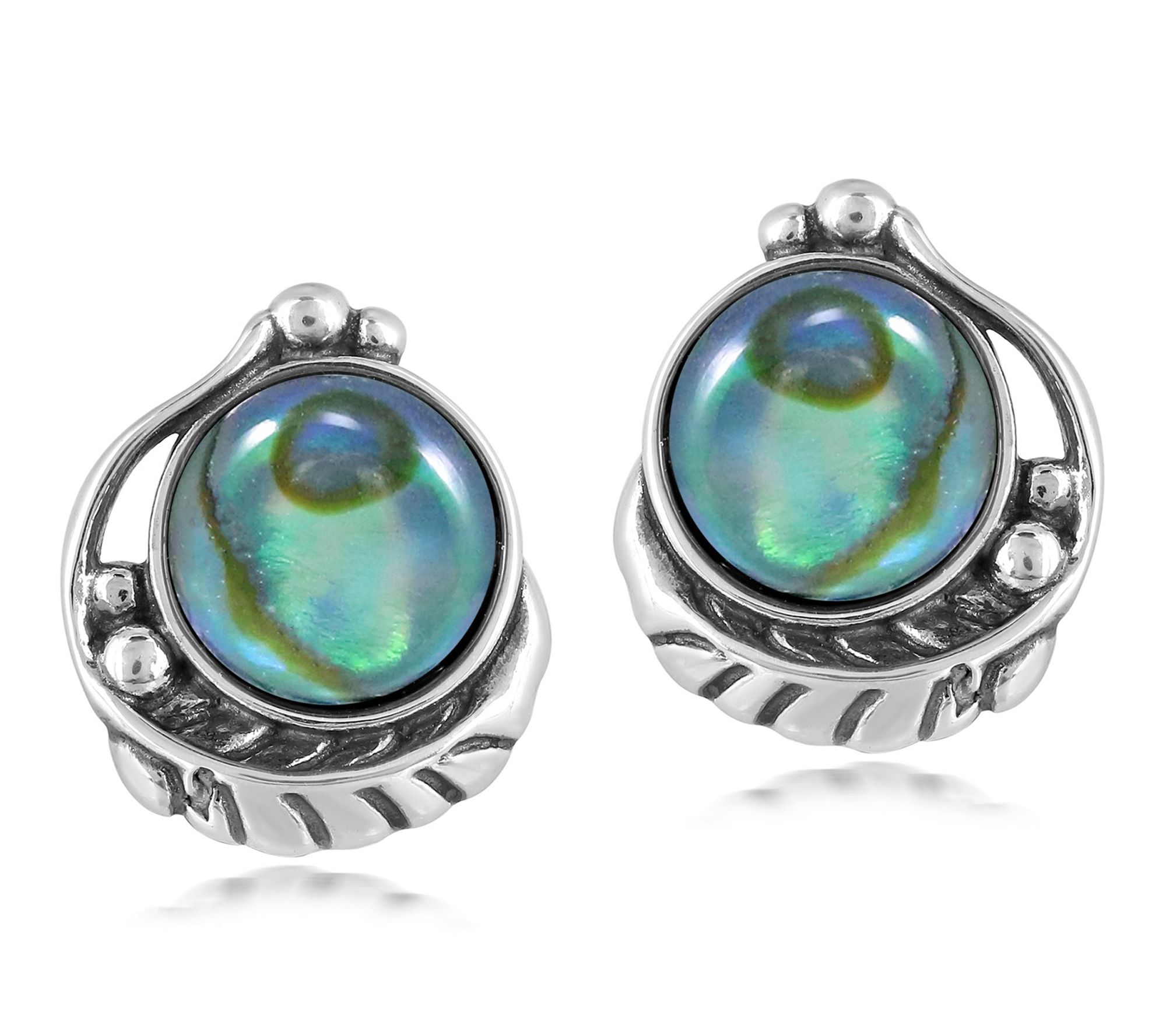 Radiating rich color and artistry, these sterling silver earrings feature mesmerizing abalone doublets framed by delicate leaf and bead motifs. Sized for everyday wear, their post and clutch closure provide comfort while adding intrigue to your favorite outfits -- think brunches, gallery strolls, or dressy evenings with friends. From American West Jewelry.