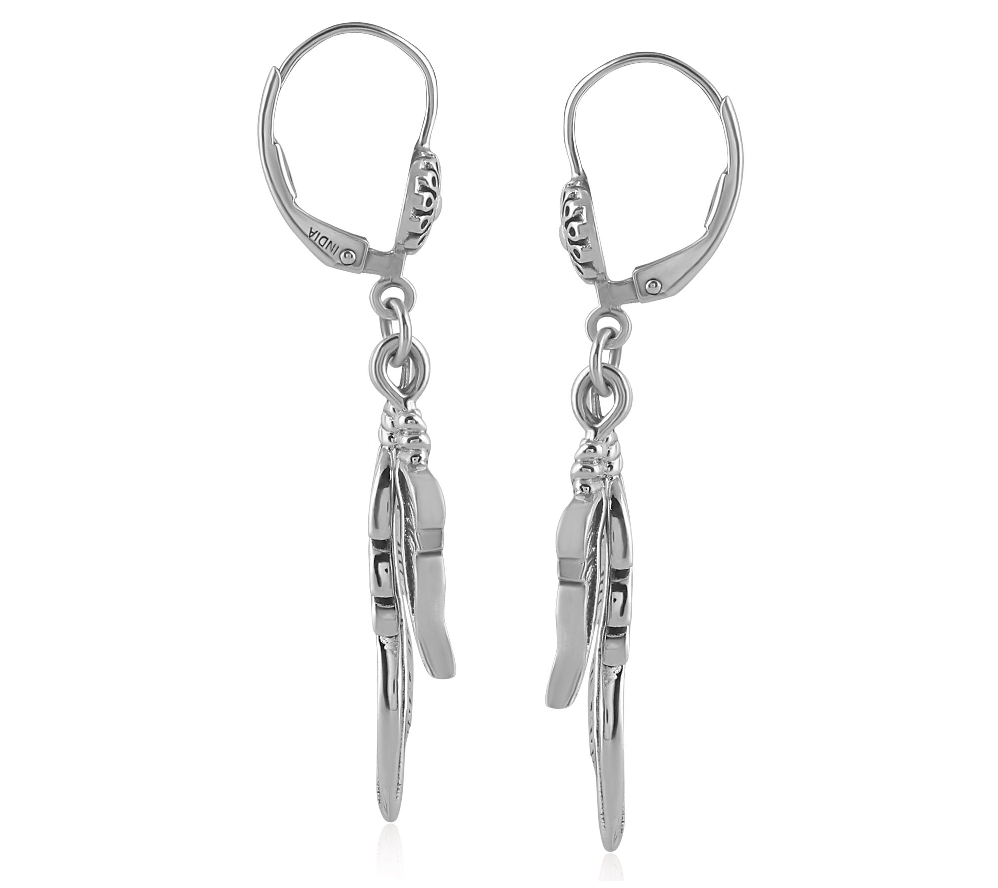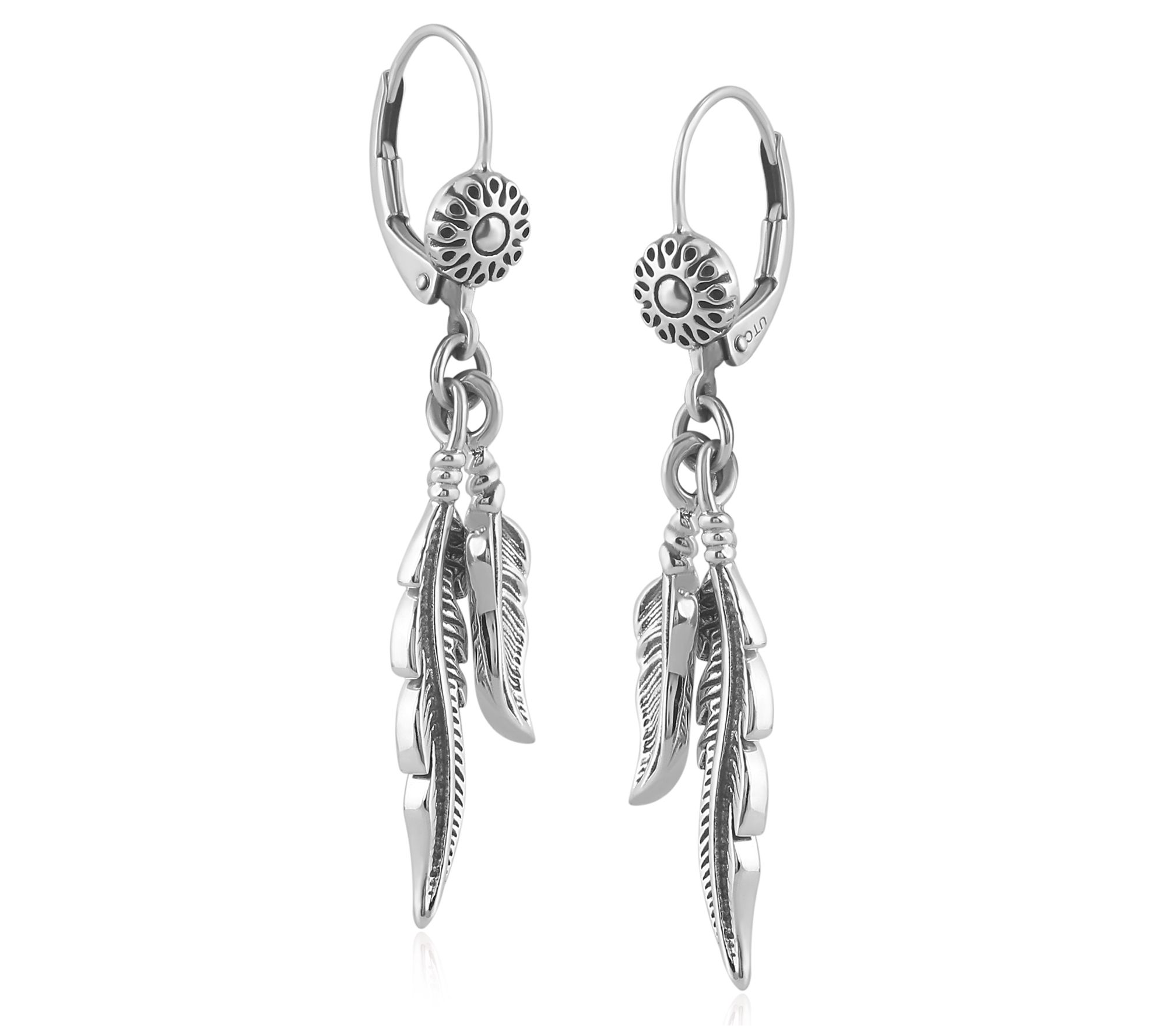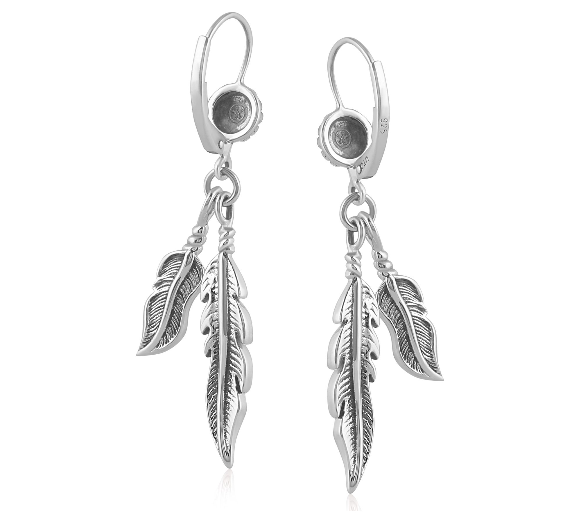 Add a touch of elegant Americana to your jewelry collection with these stunning sterling silver double-feather earrings from American West. With both a long and a short feather dangling gracefully, they offer movement and unique charm. From American West Jewelry.
