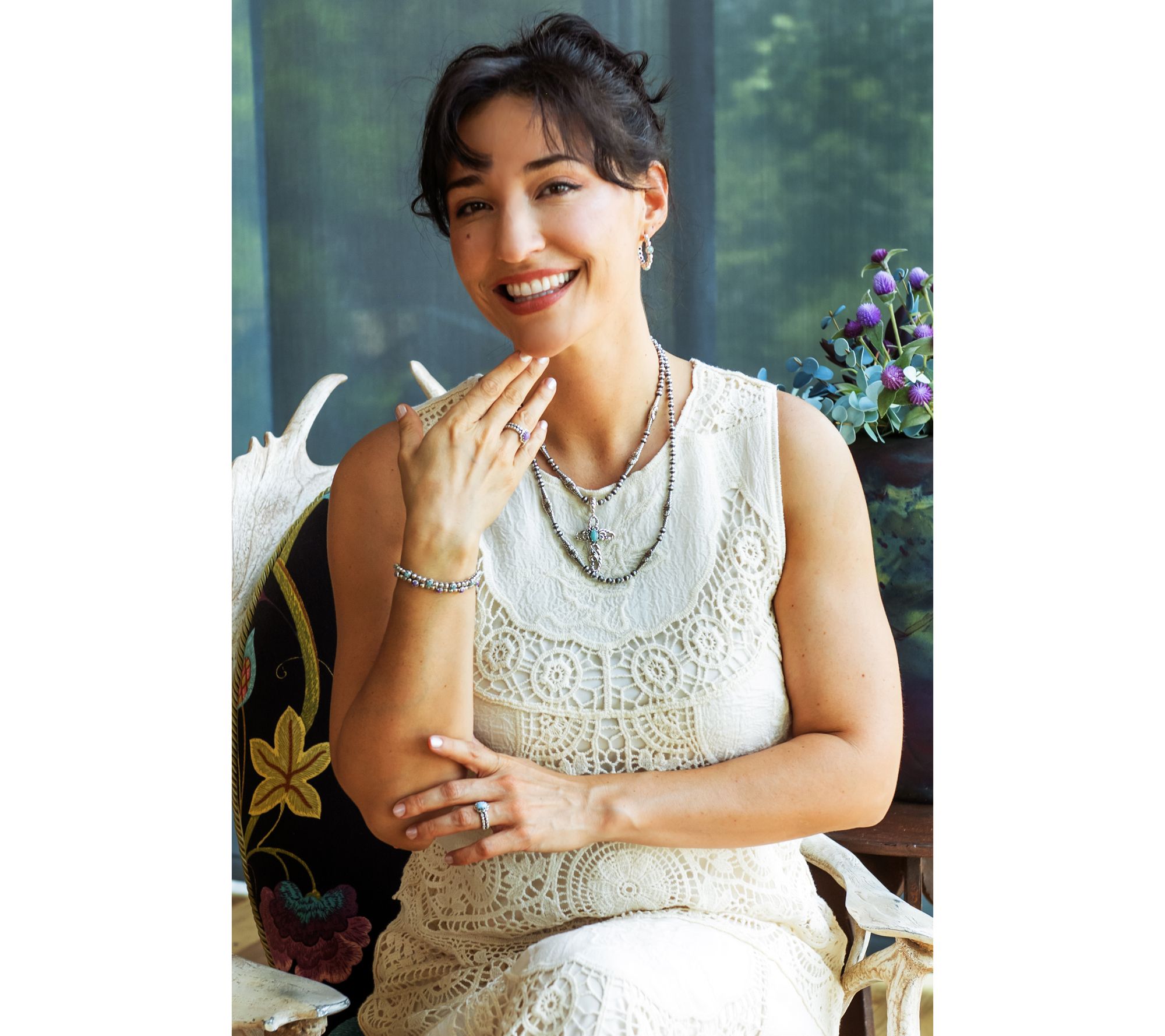 A double band of concha flowers elevates this oval gemstone cabochon ring to full bloom status. From American West Jewelry.