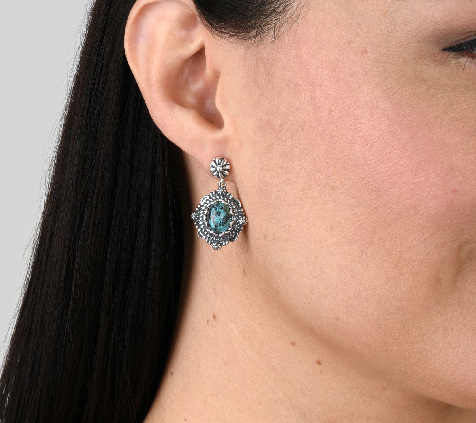 Something just for you. Something that shows some personality. Something that makes you feel truly dressed. Find it in these floral-accented gemstone drop earrings. From American West Jewelry.