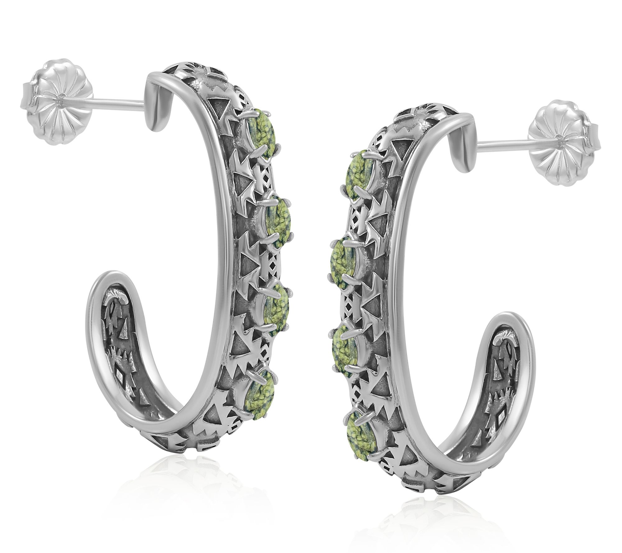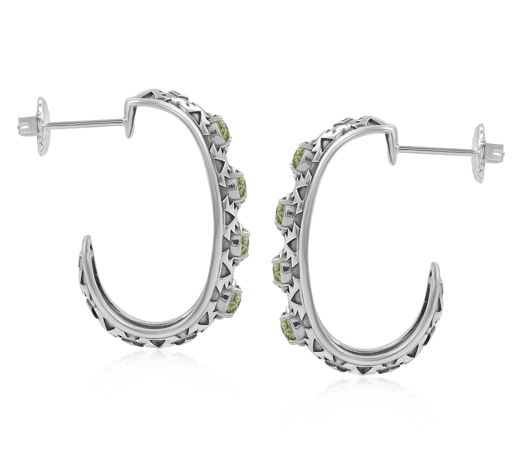 Rich gemstones and swirling sterling silver bring a playful pop of color to your day -- whether you're heading to brunch or adding interest to your everyday look. These J-hoop earrings showcase marquise-shaped cabochons, each set in bold silver with detailed texturing for dimensional style. From American West Jewelry.