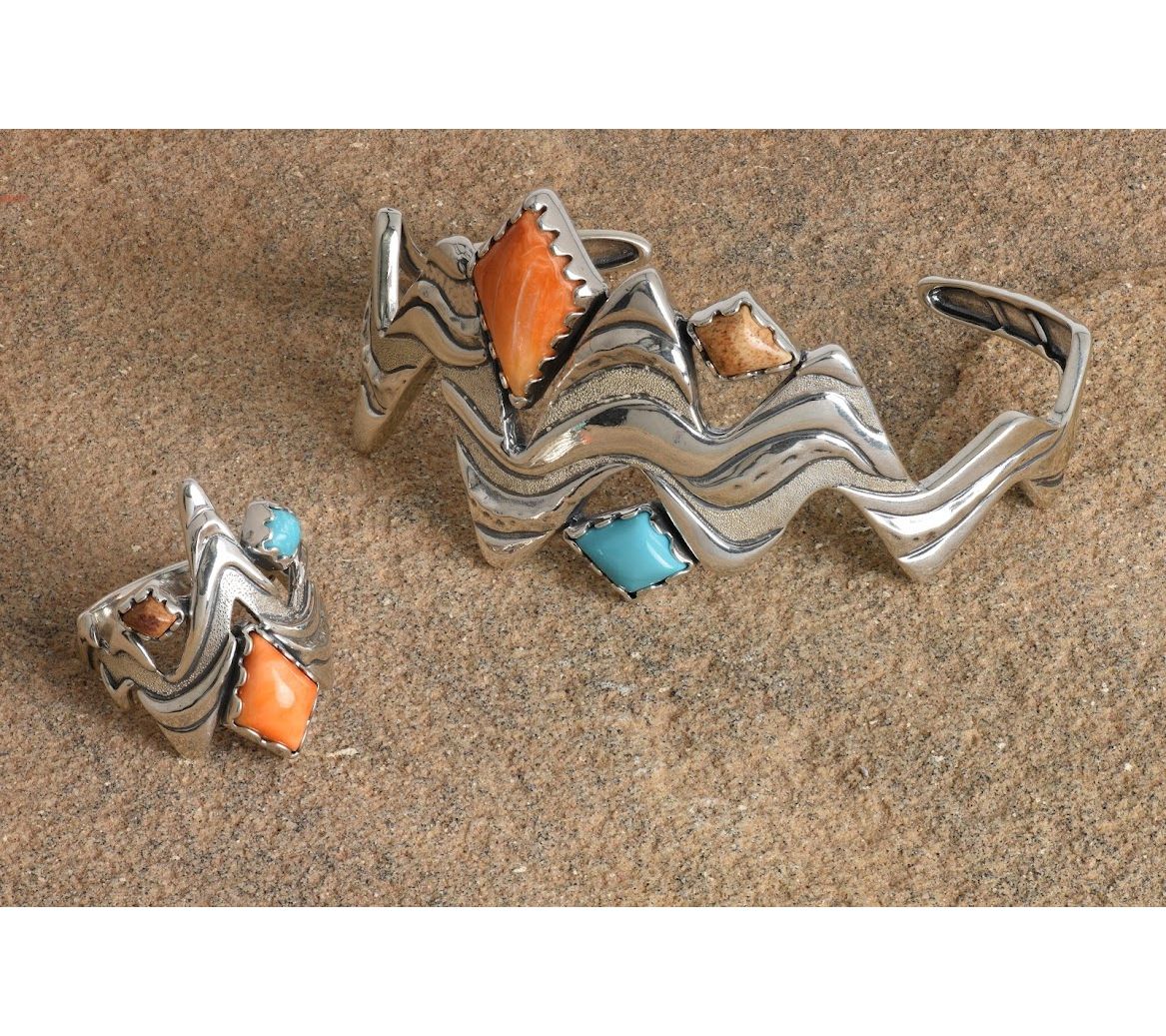 Take your look to new heights with details like this gorgeous cuff, featuring kite-shaped gemstone cabochons. From American West Jewelry.