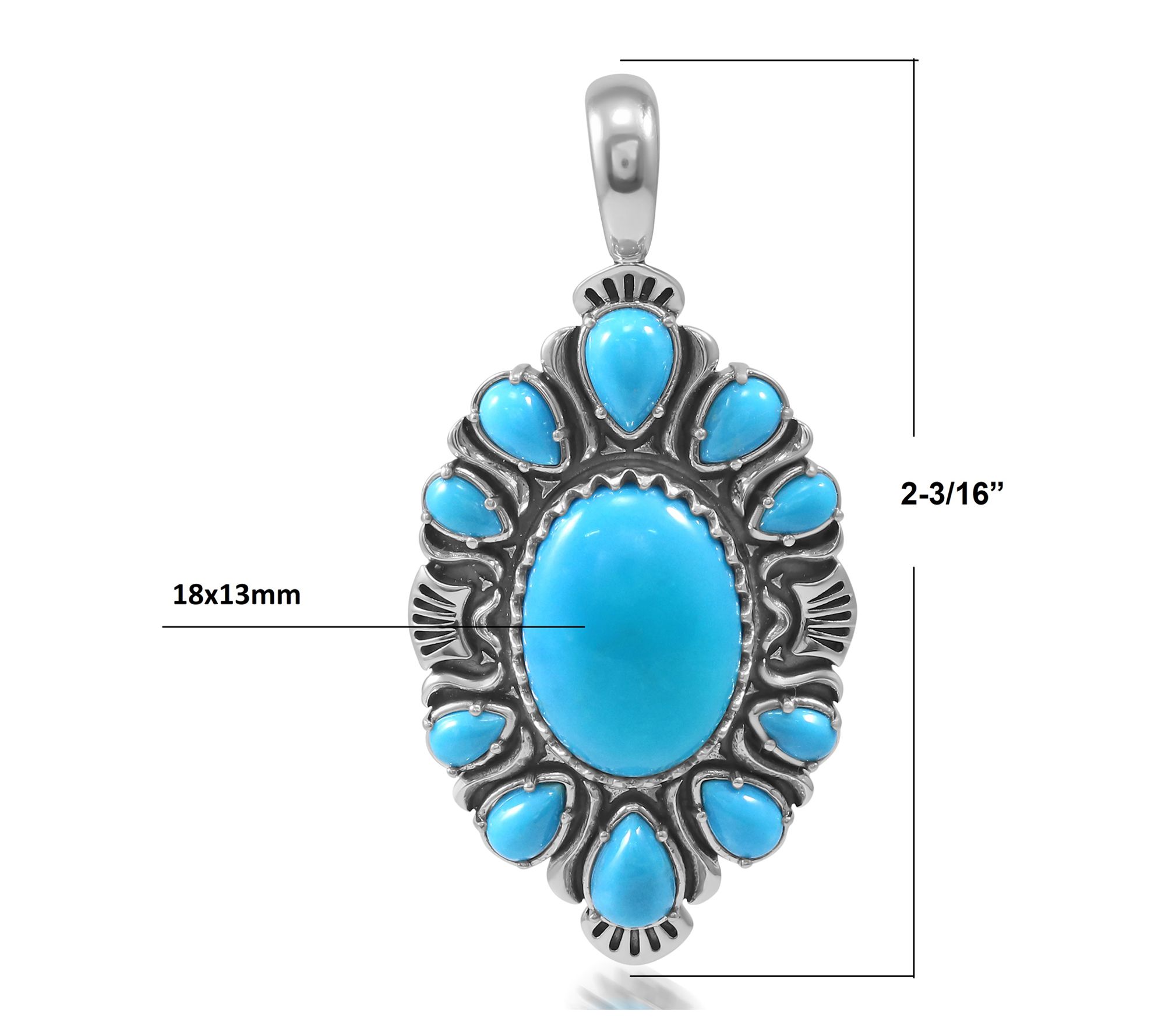 Slip on this sterling silver enhancer to bring a vibrant Southwest charm to celebrations or casual days. The turquoise cabochons catch the light, while the engraved back adds a thoughtful detail perfect for gifting or adding interest to your favorite chain or cord. From American West Jewelry.