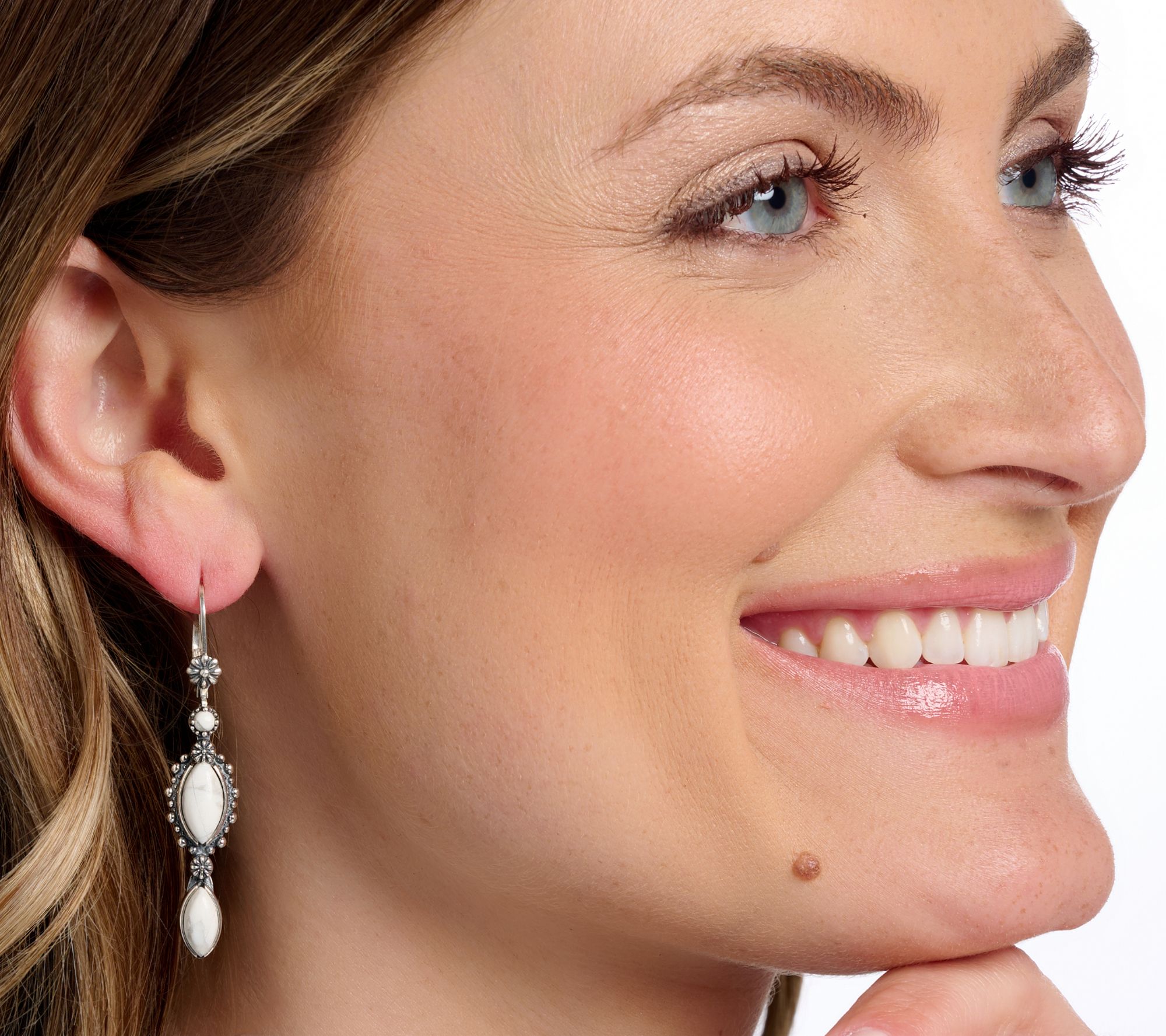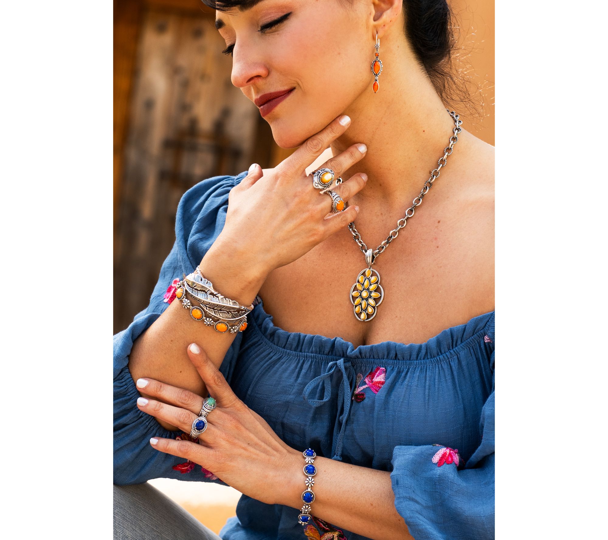 A stroll through art fairs or a simple mid-afternoon coffee meet-up feels more vibrant when these sterling silver teardrop earrings are along for the ride. Lined with bezel-set marquise and round gemstone cabochons, the subtle flower and bead accents add a dash of Southwestern charm to your everyday. From American West Jewelry.