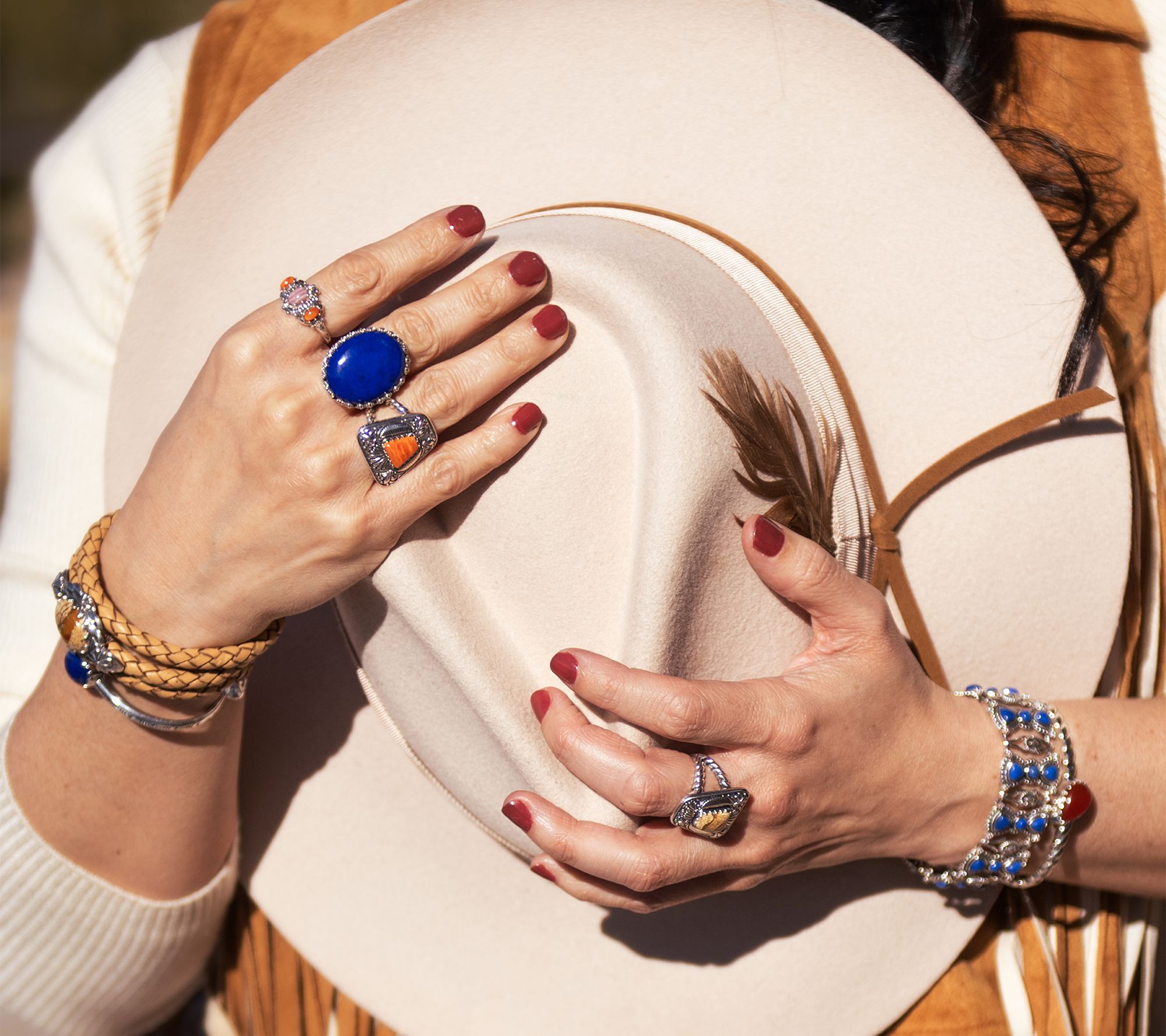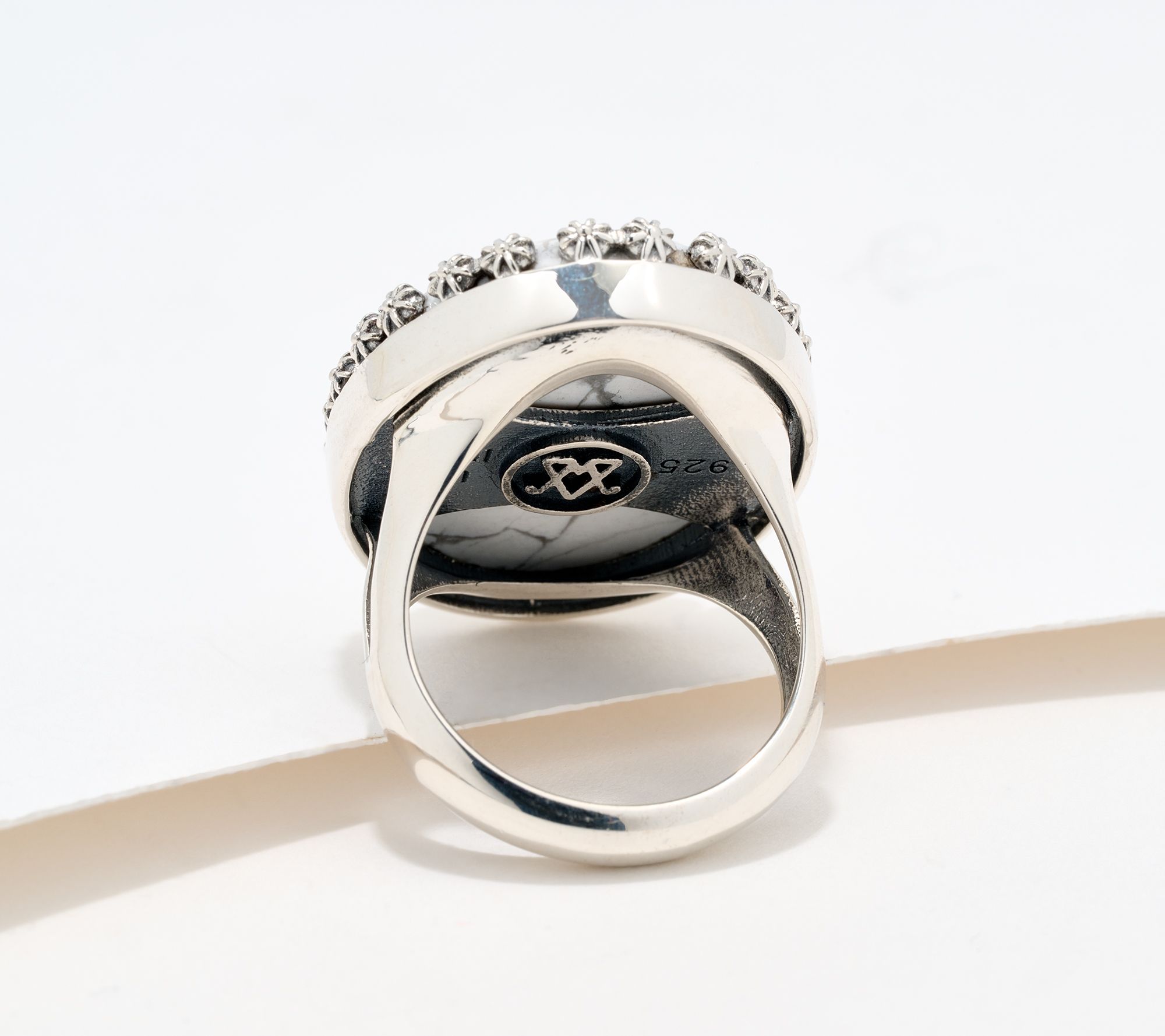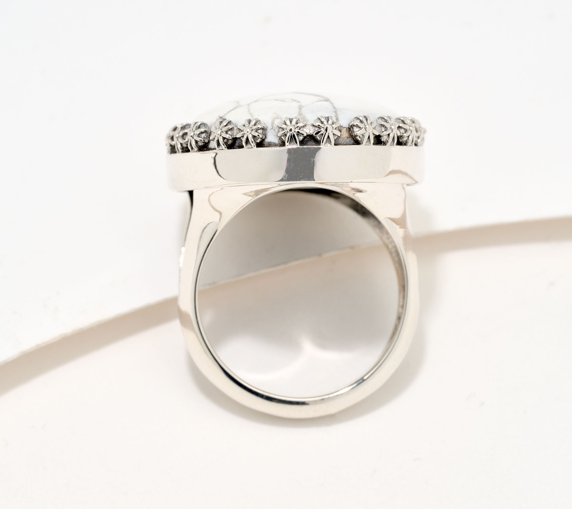 Turn any ordinary outfit into a statement style when you slip on this sterling silver ring. Featuring an oval gemstone cabochon with a striking concha bezel setting, plus a unique split shank, it's the piece you'll reach for to create a confident look for any occasion. From American West Jewelry.