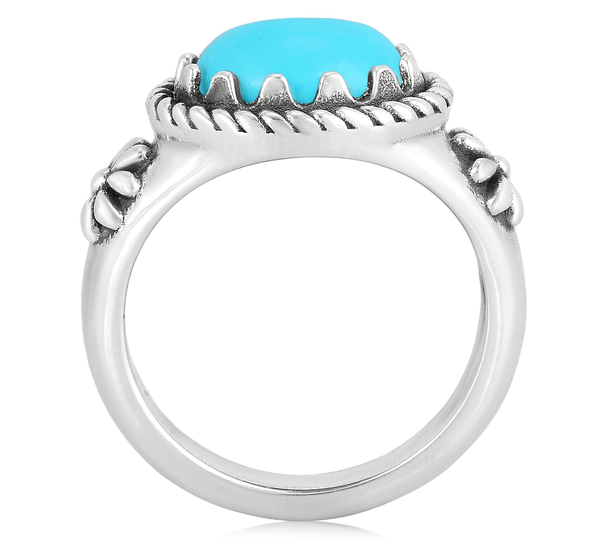 Make a statement with this exquisite Sleeping Beauty turquoise ring from American West. The east-west design adds a modern twist, while the sterling silver rope border showcases the genuine turquoise. Ideal for everything from casual outings to special occasions, this piece will effortlessly complement your style. From American West Jewelry.
