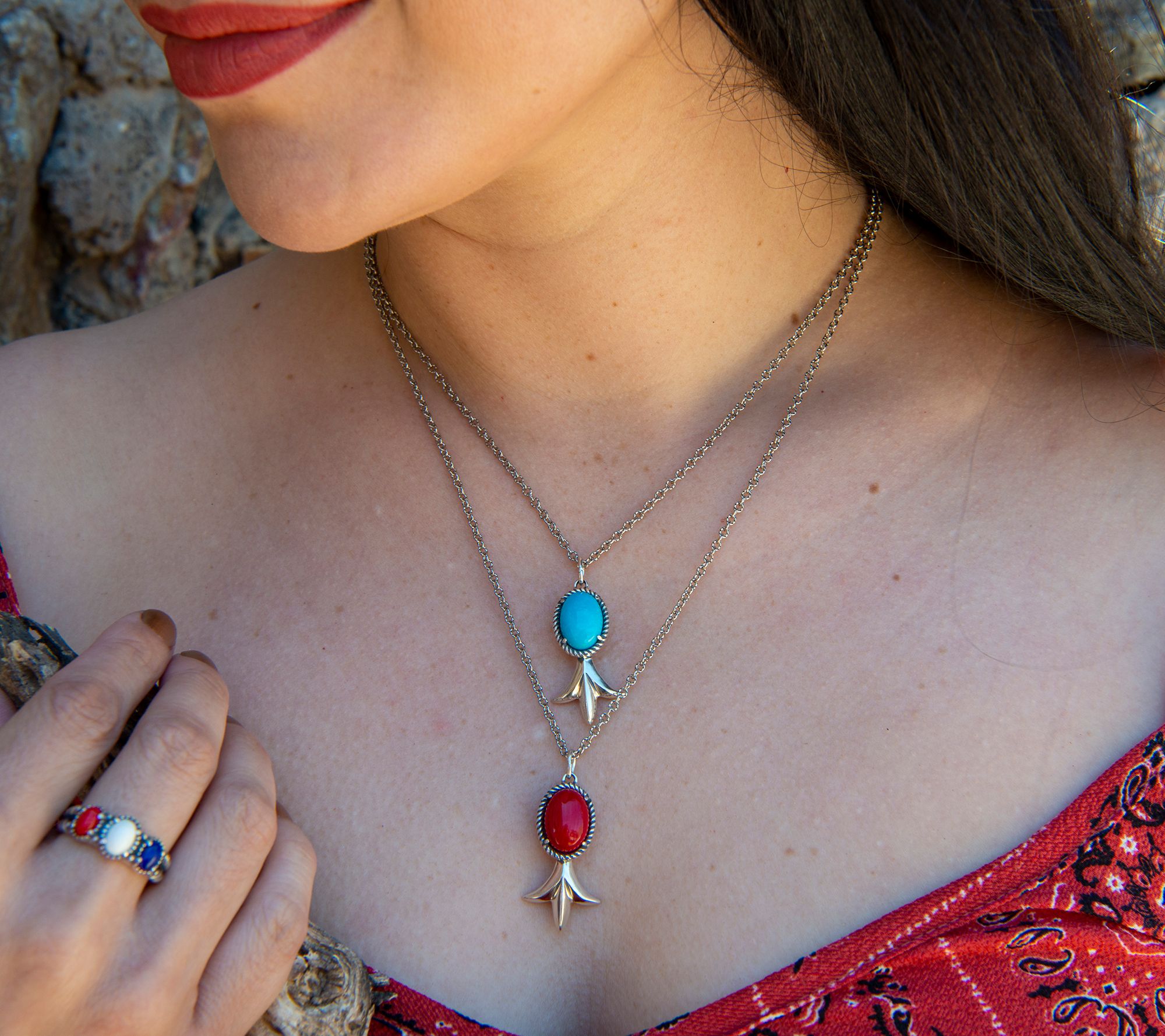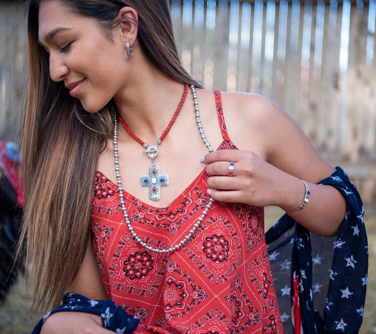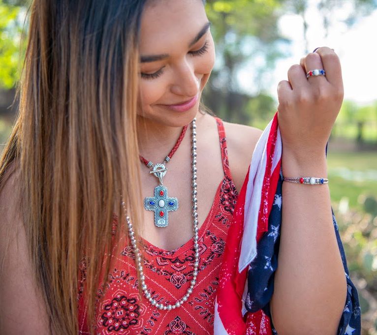 Red, white, and blue. More than just a classic color combination, this trio of red agate, lapis, and white agate cabochons allows this sterling silver ring to convey your American pride without saying a word. From American West Jewelry.