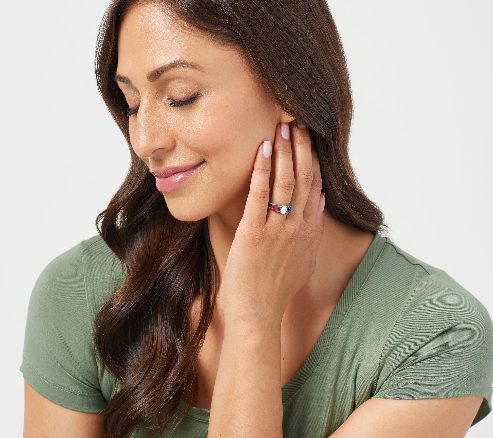 American West Sterling Silver Patriotic 3 Gemstone Ring