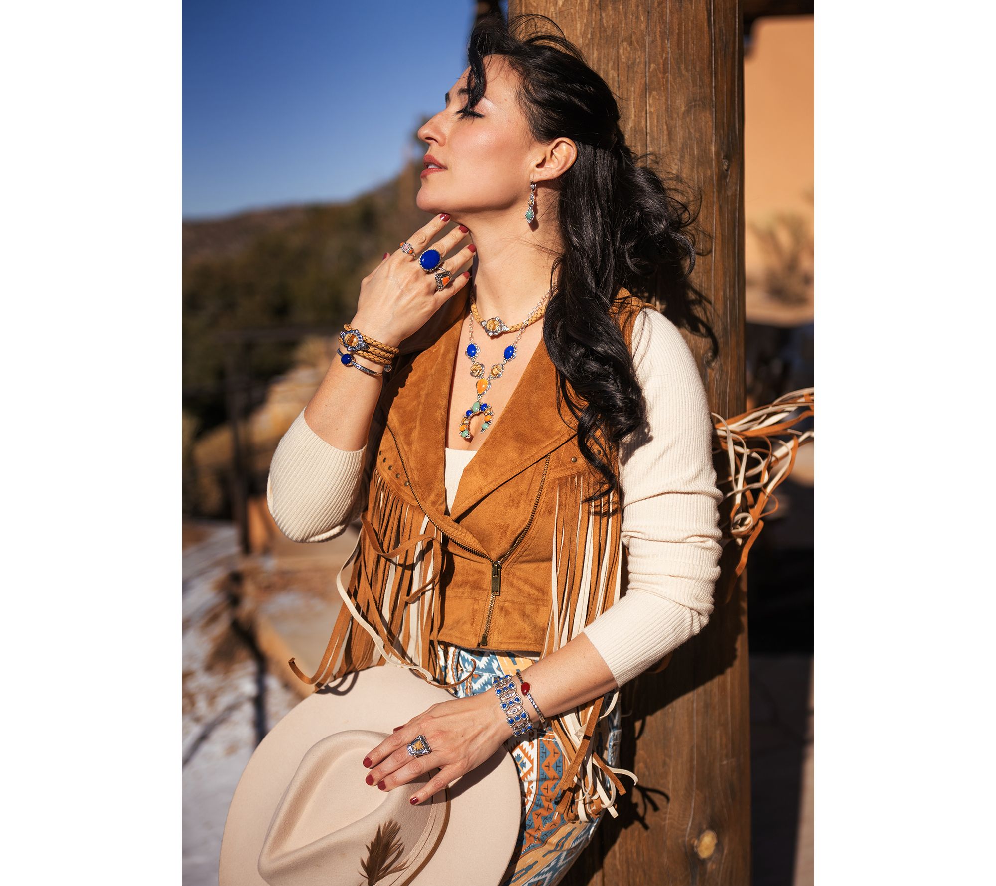 American West Sterling Silver Patterned Gemstone Stackable Cuff