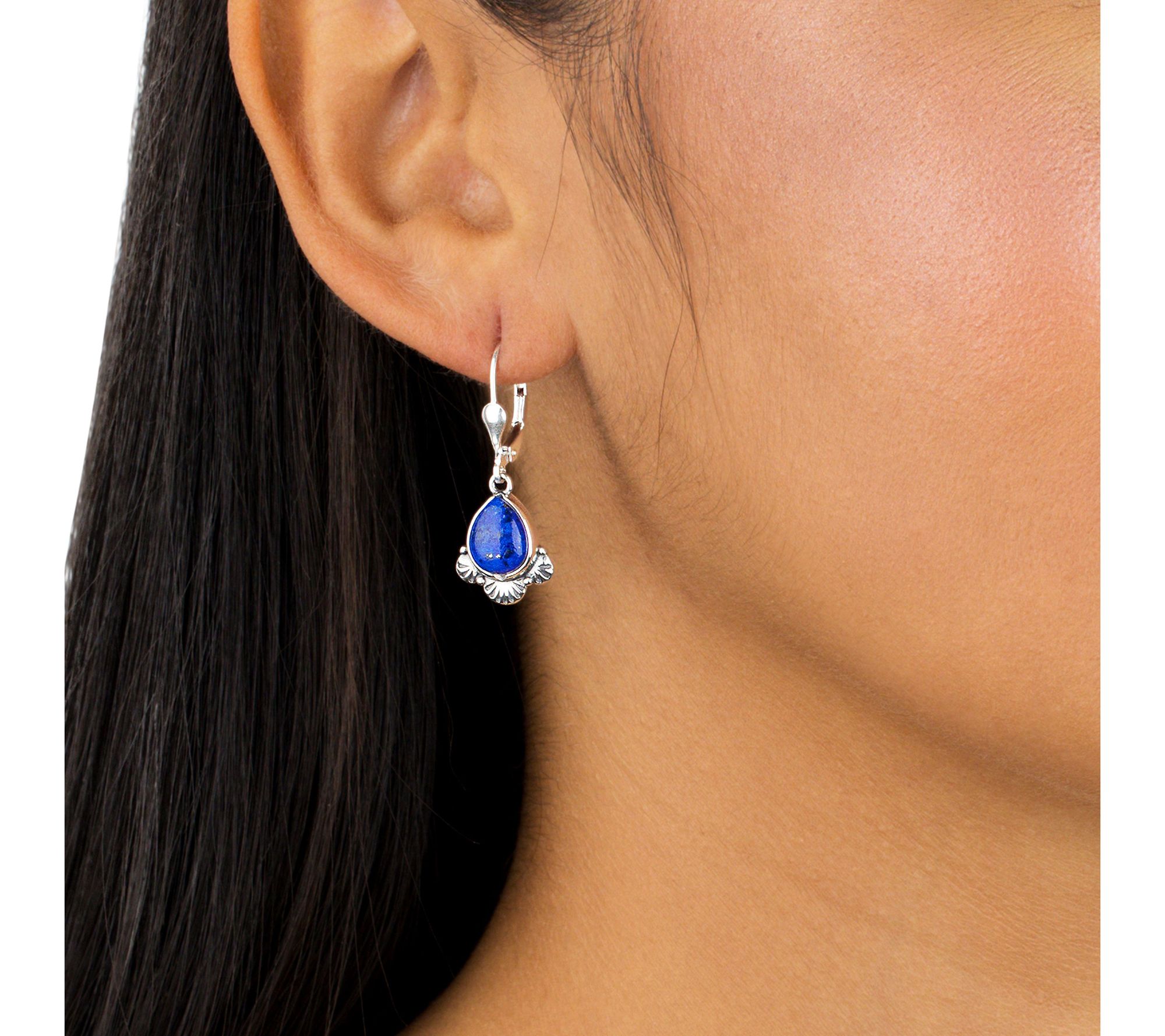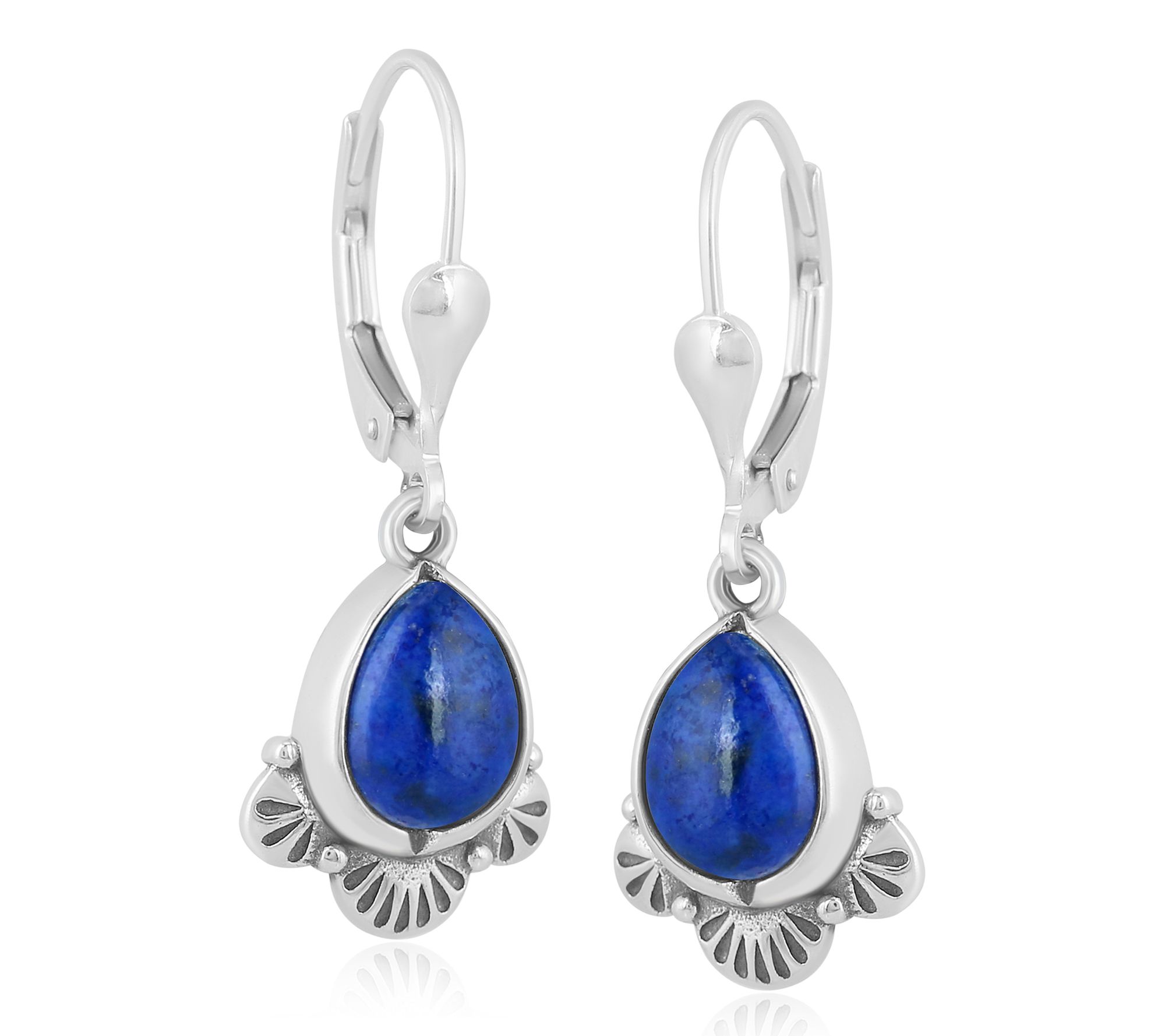 American West Sterling Silver Pear Gemstone Dan gle Earrings