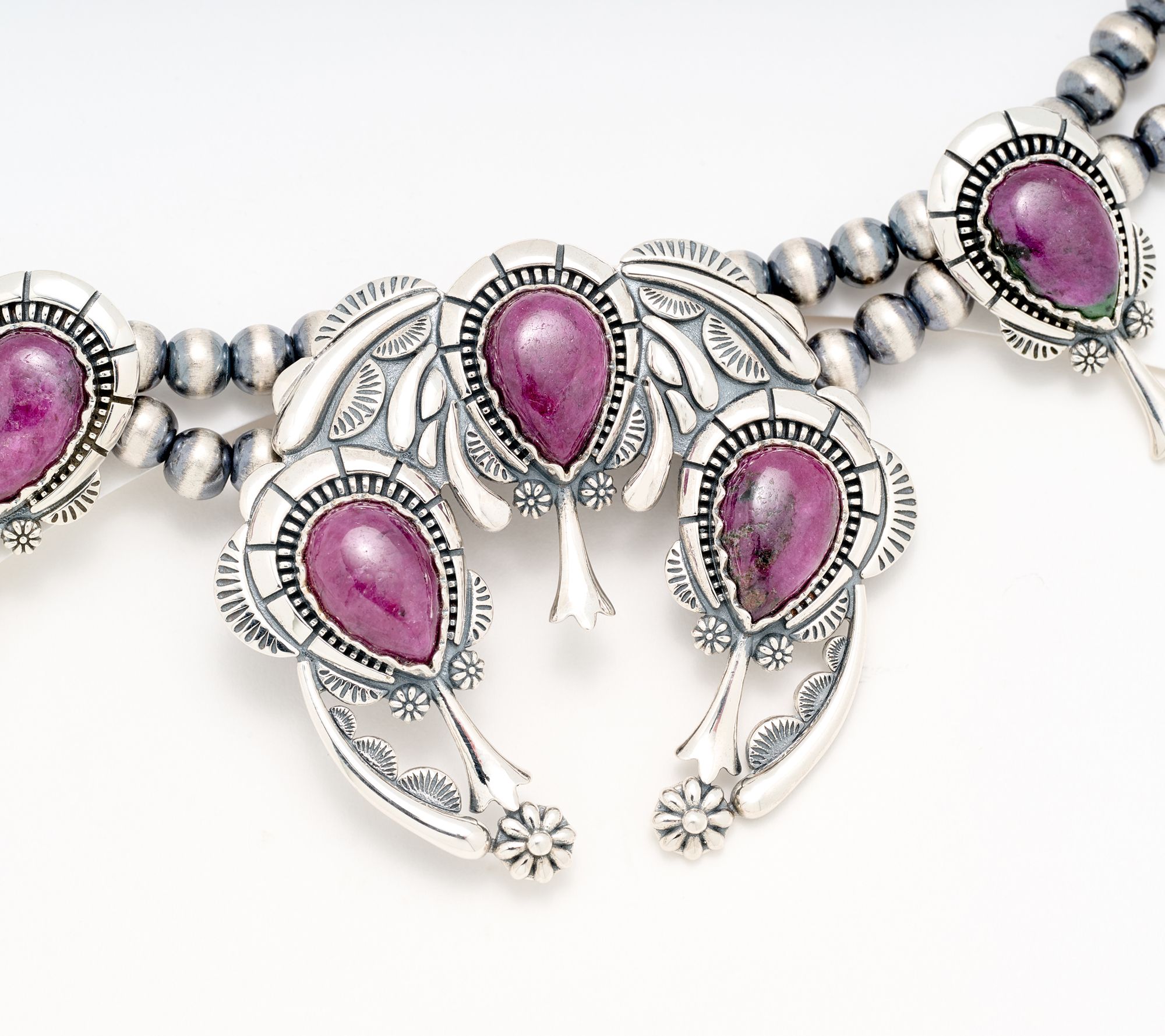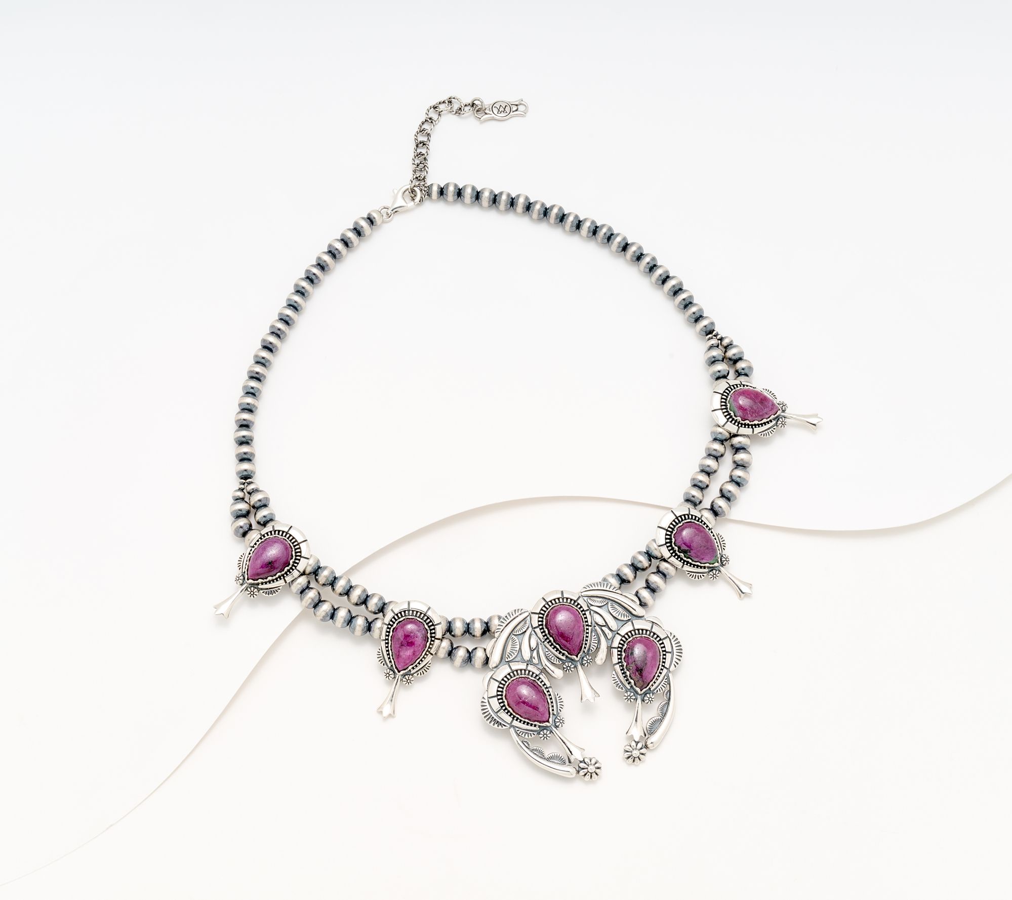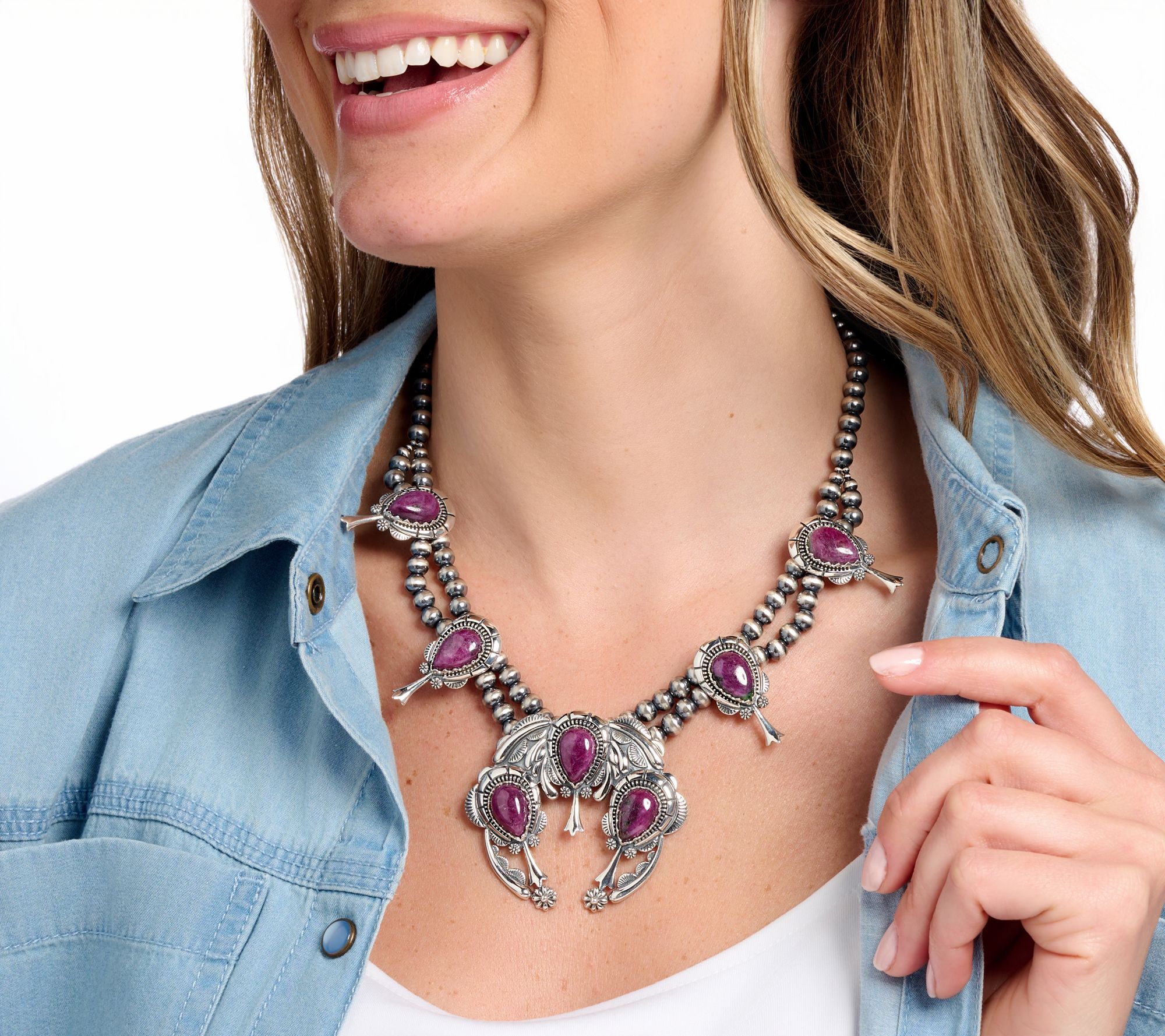 Take a journey through Southwestern culture and charm every time you fasten on this necklace. Its polished sterling silver beads frame a statement naja center that's anchored by cabochon gemstones for a rich pop of color. With its adjustable length and oxidized finish, this piece brings style and tradition to both casual afternoons and dressier evenings. From American West Jewelry.