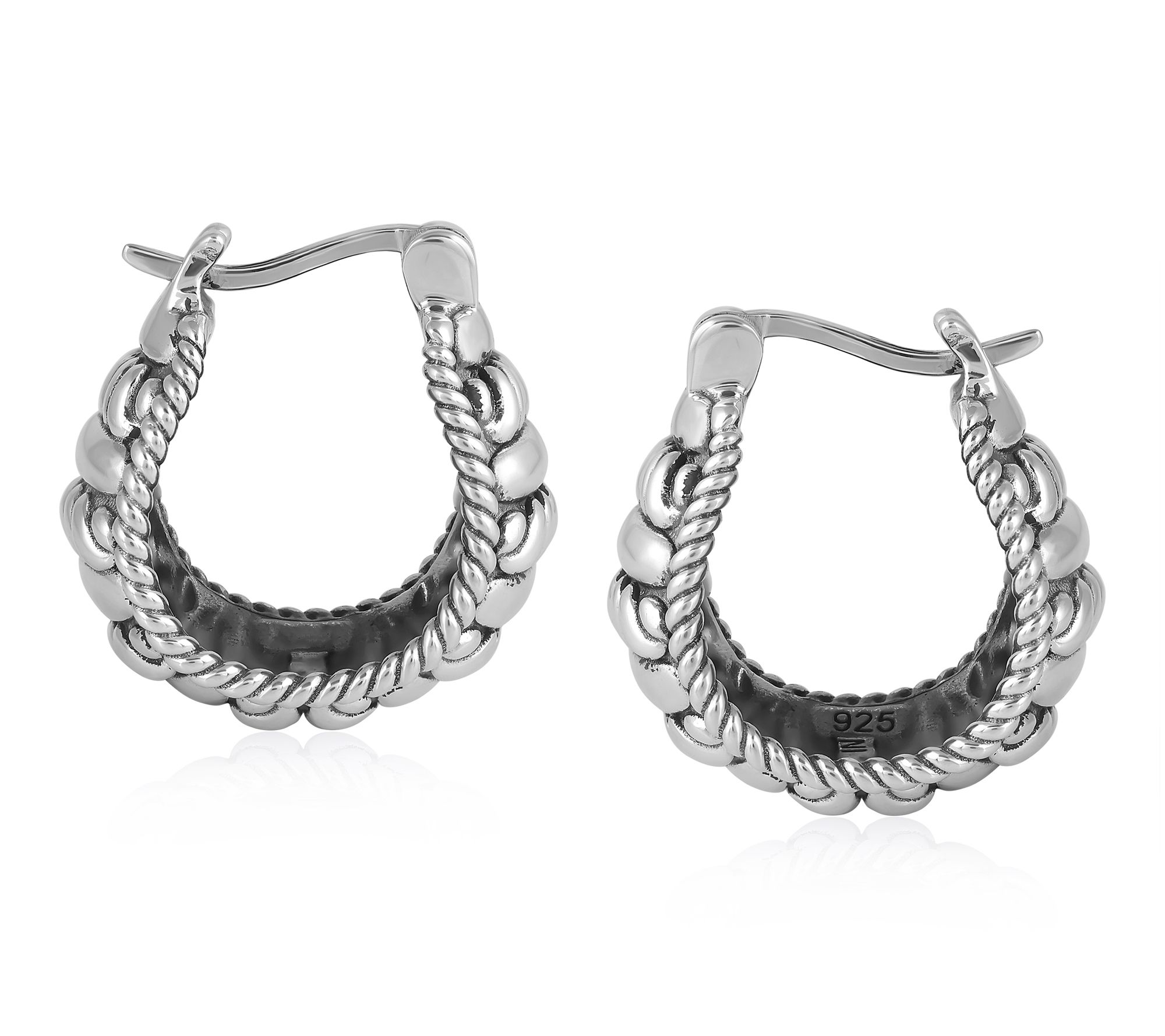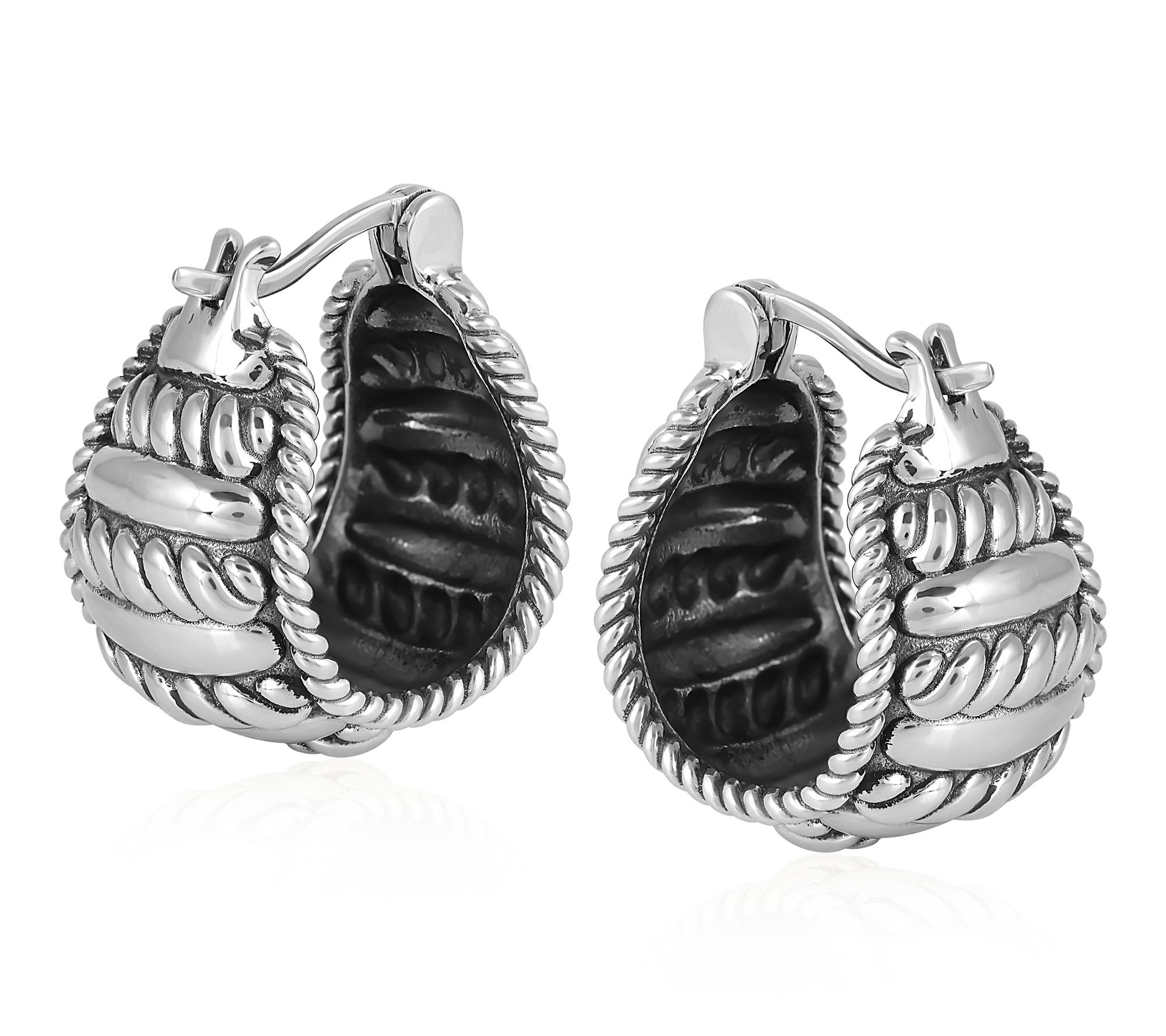 Show off your bold side with these sterling silver huggie hoop earrings that radiate western charm. The intricate rope-inspired detailing and polished finish lend an artful touch to any outfit -- from an afternoon out to a night on the town. From American West Jewelry.