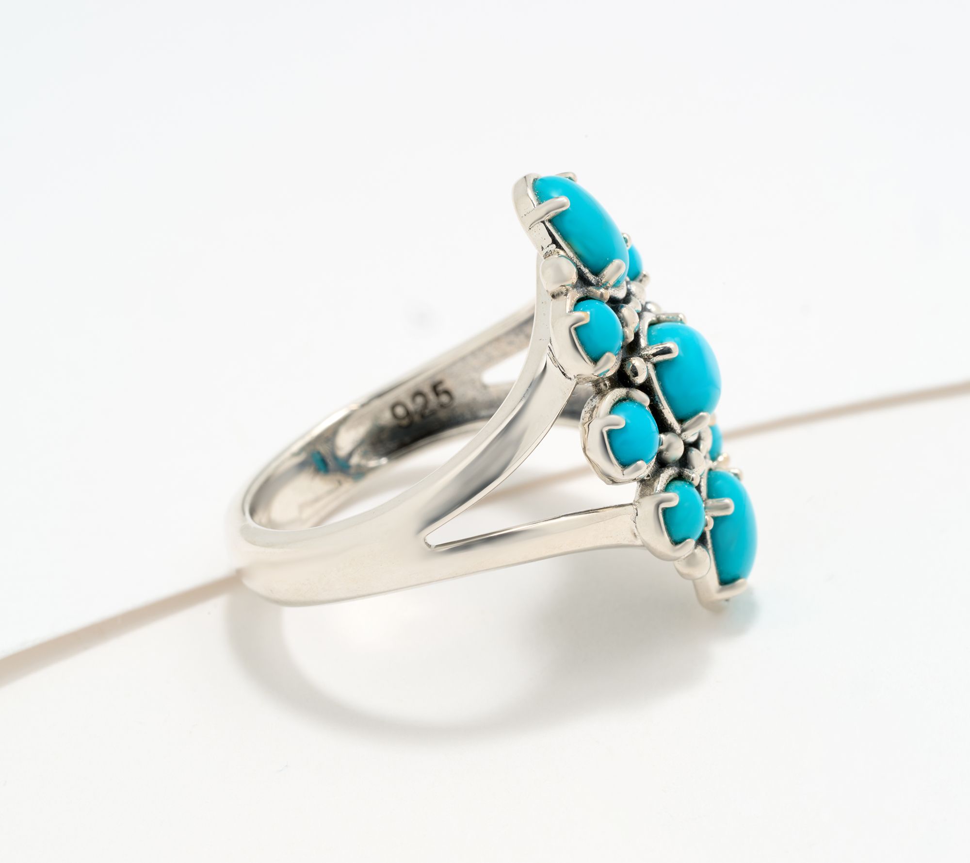 Brighten up your favorite outfits with a ring that radiates Southwest spirit and pops of signature Sleeping Beauty turquoise. Whether layered with your silver bracelets for a casual day out or worn solo for a dinner gathering, the cluster of luminous cabochons draws just enough attention to make any look feel fresh and inspired. Presented in a keepsake box, it's ready to become a standout in your everyday rotation. From American West Jewelry.