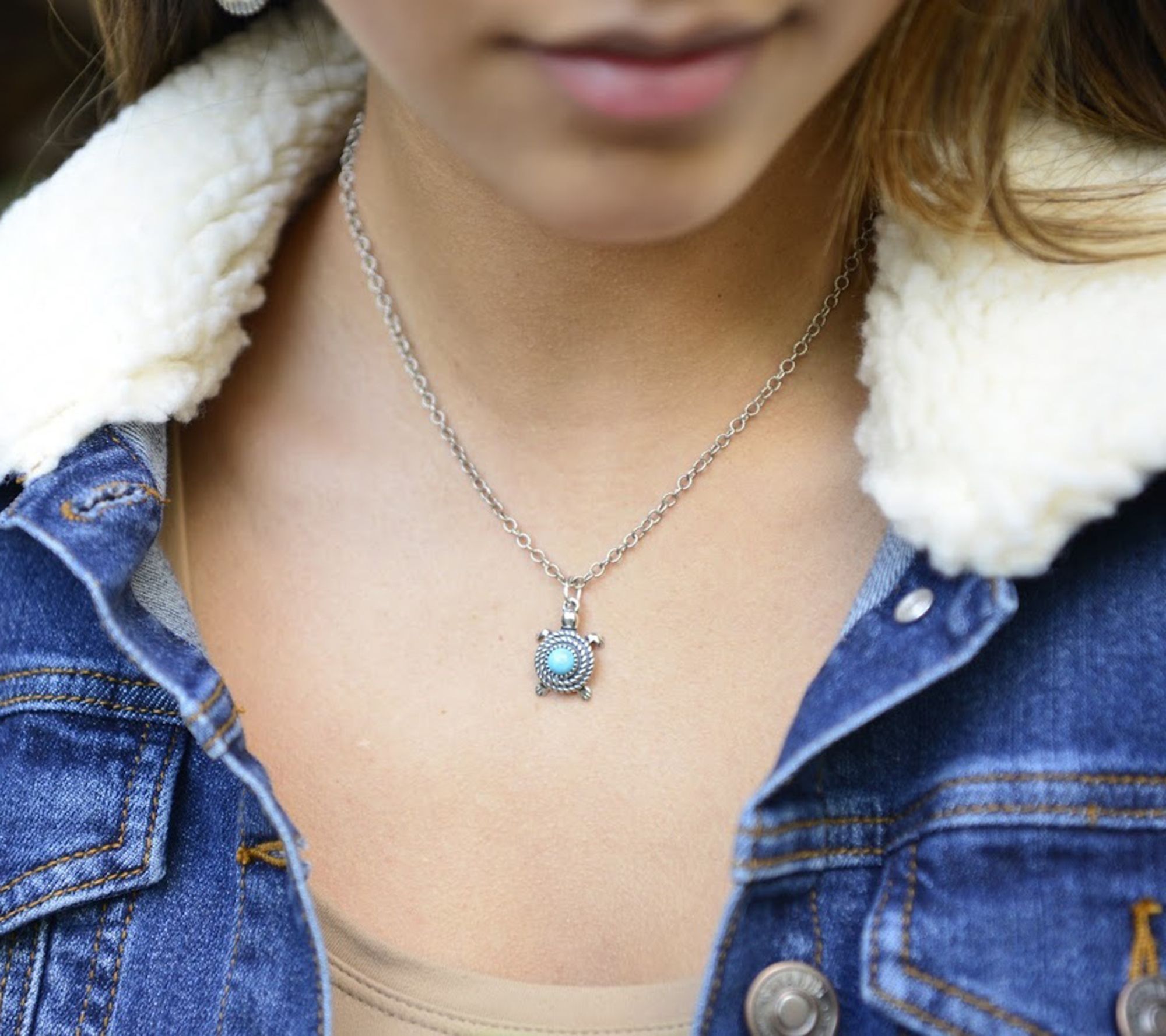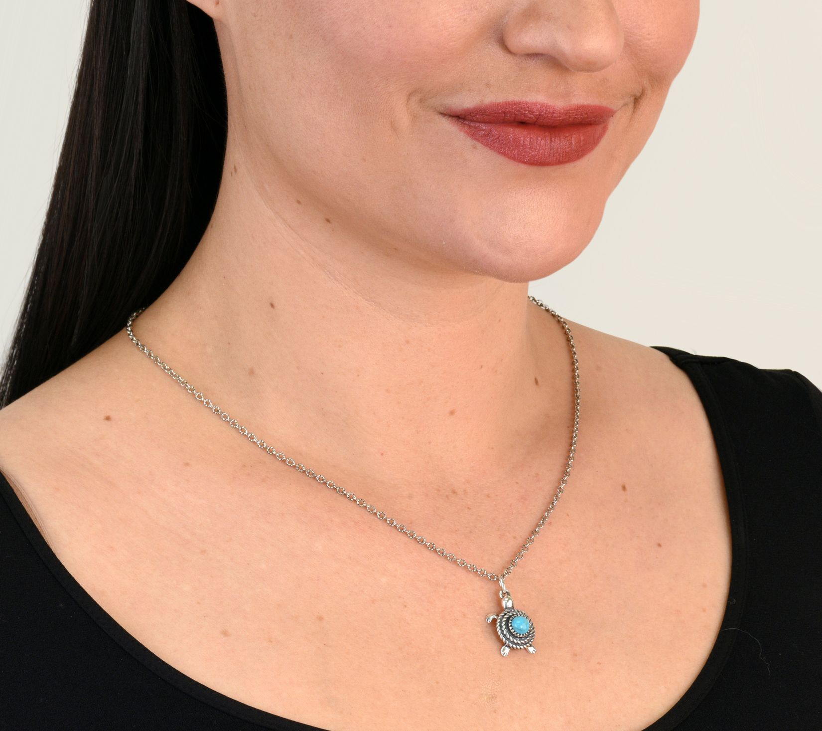 Add some character to your look with this gorgeous gemstone turtle necklace. From American West Jewelry.