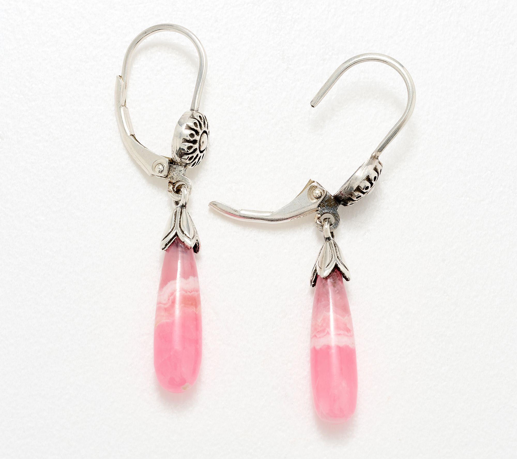 Graceful teardrop gemstone beads anchor these sterling silver earrings with all the spirit of the Southwest, complemented by a squash blossom cap and a simulated native-pearl accent. Ideal for adding color and artistry to any outfit, this pair shines from morning gatherings to evening events. From American West Jewelry.