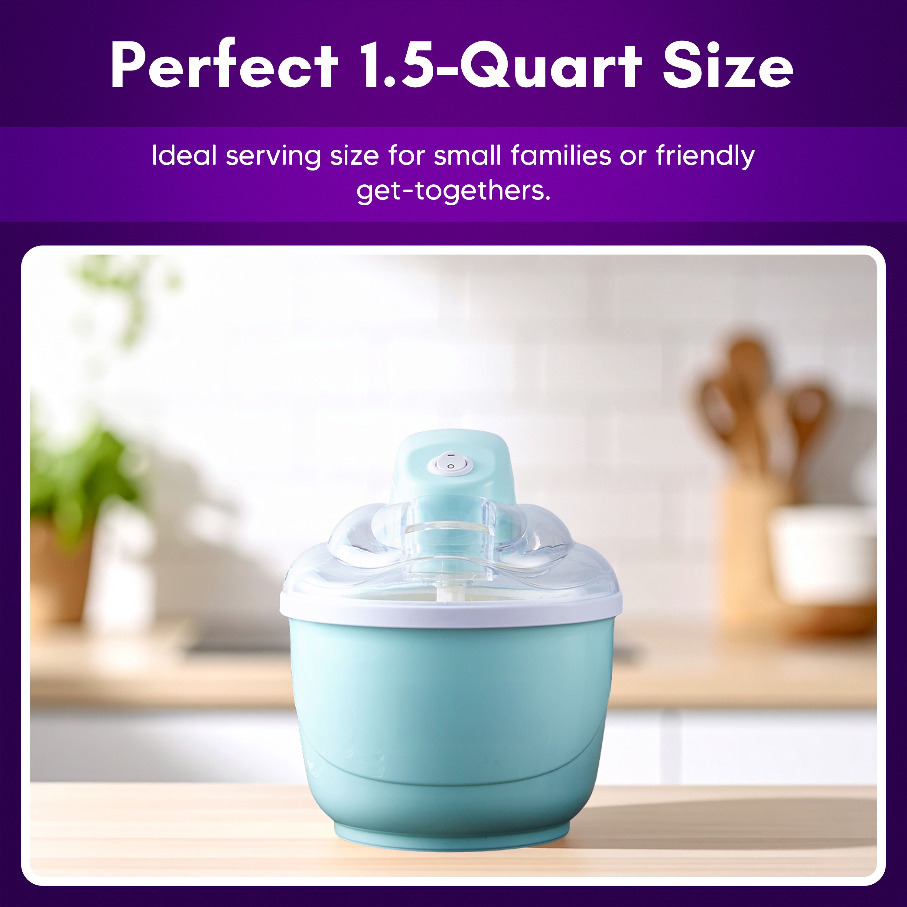 Whip up frozen favorites in your own kitchen with this electric ice cream maker. Whether you're hosting a summer BBQ or craving a sweet treat after dinner, the 1-quart Quick Freeze Bowl and motorized paddle deliver smooth, creamy results in less than 40 minutes. Enjoy customizing each batch with your favorite mix-ins and toppings. From Americana.