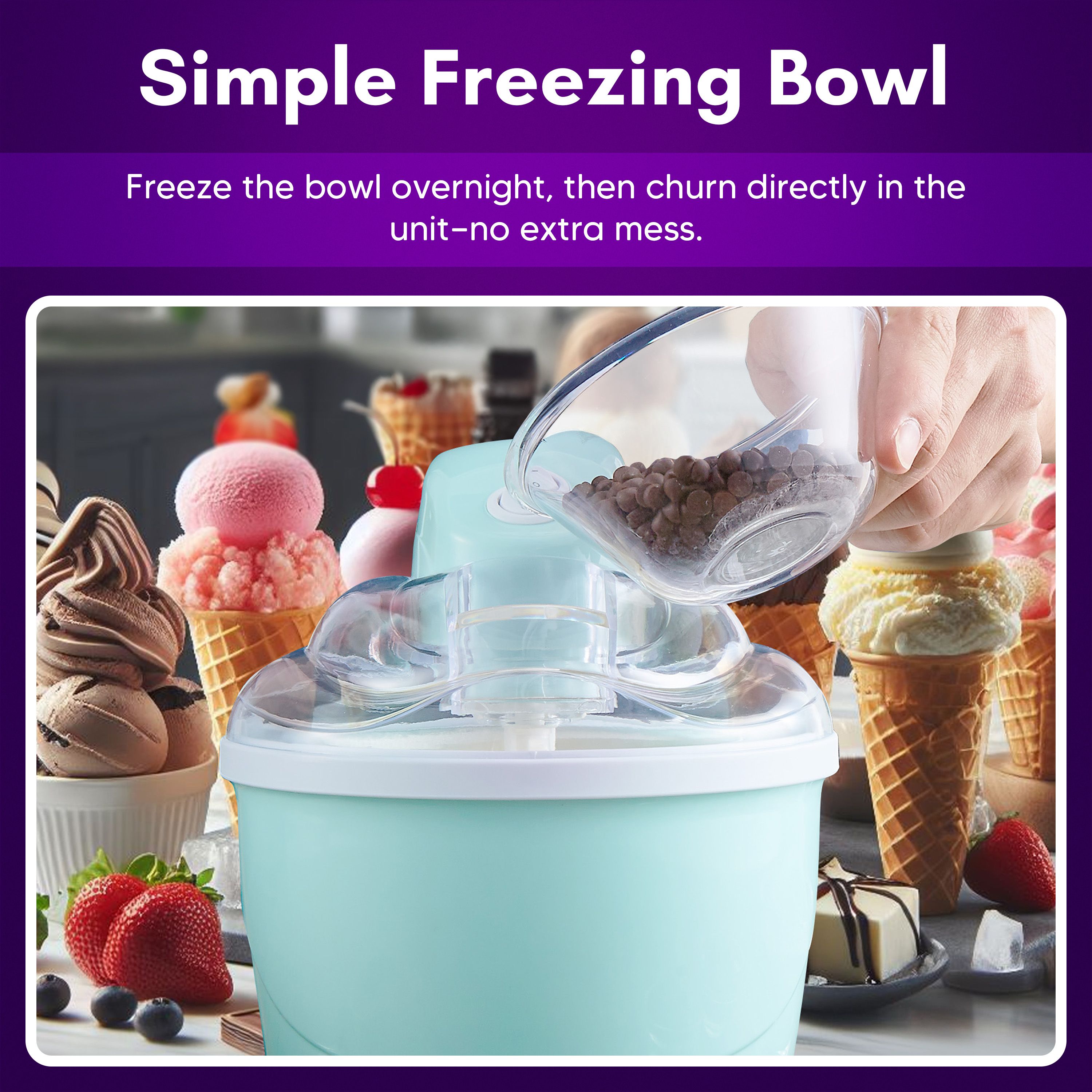 • Includes EIM3052 ice cream maker base, motor, Quick Freeze bowl, and mixing paddle