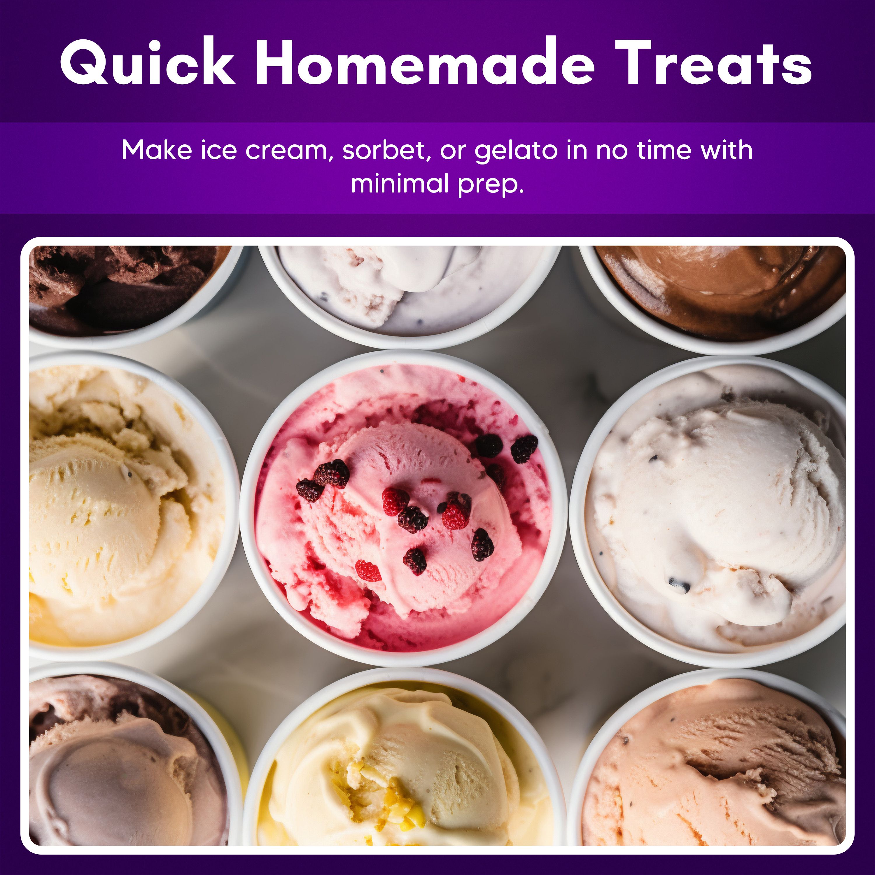 • Makes ice cream, sorbet, gelato, and frozen yogurt in under 40 minutes