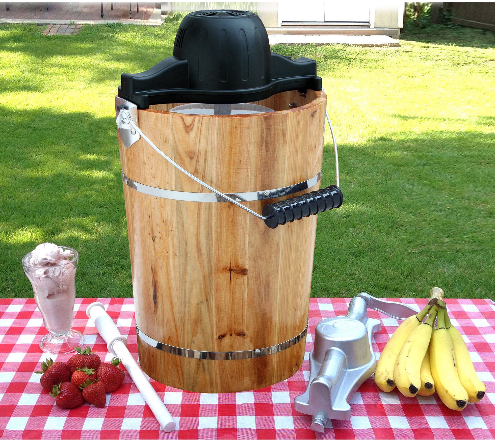 Whether you sit back and relax while the electric motor does the mixing or have the kids take turns using the hand crank, this old-fashioned ice cream maker will be churning out a tasty treat for everyone to enjoy in about 30 minutes! From AmeriHome.