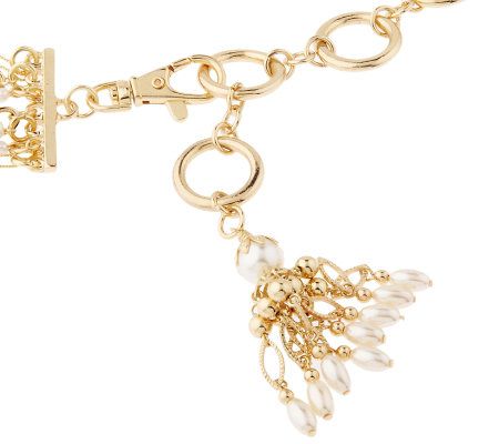 Details, details. Dress up a long shirt or a pair of denim jeans with this beaded multi-chain belt. Seven rows of metal chains are made up of oval and round bead sections--perfect for adding a bit of bling your saucy ensemble. From Amiee Lynn.