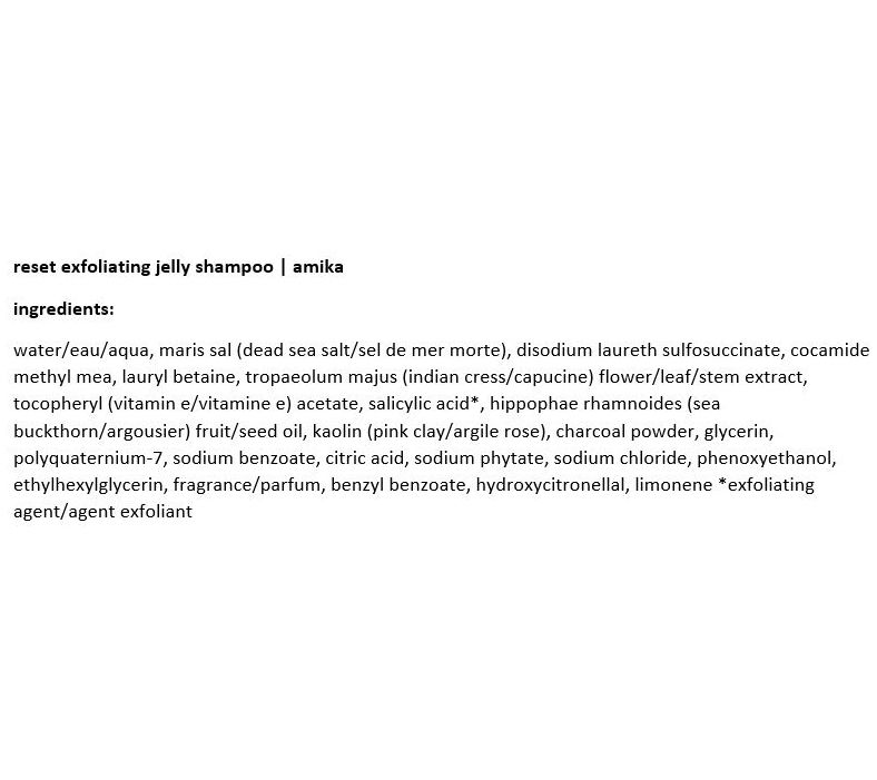 Reset Exfoliating Jelly Shampoo is an innovative jelly shampoo that utilizes charcoal, pink clay, and sea salt to help clean and exfoliate the scalp. Hit reset on your scalp with this weekly treatment. Hair is left feeling ready for another week of to-dos.