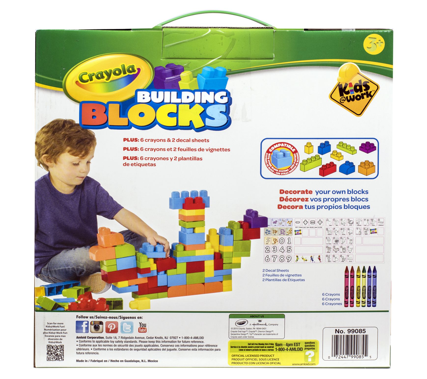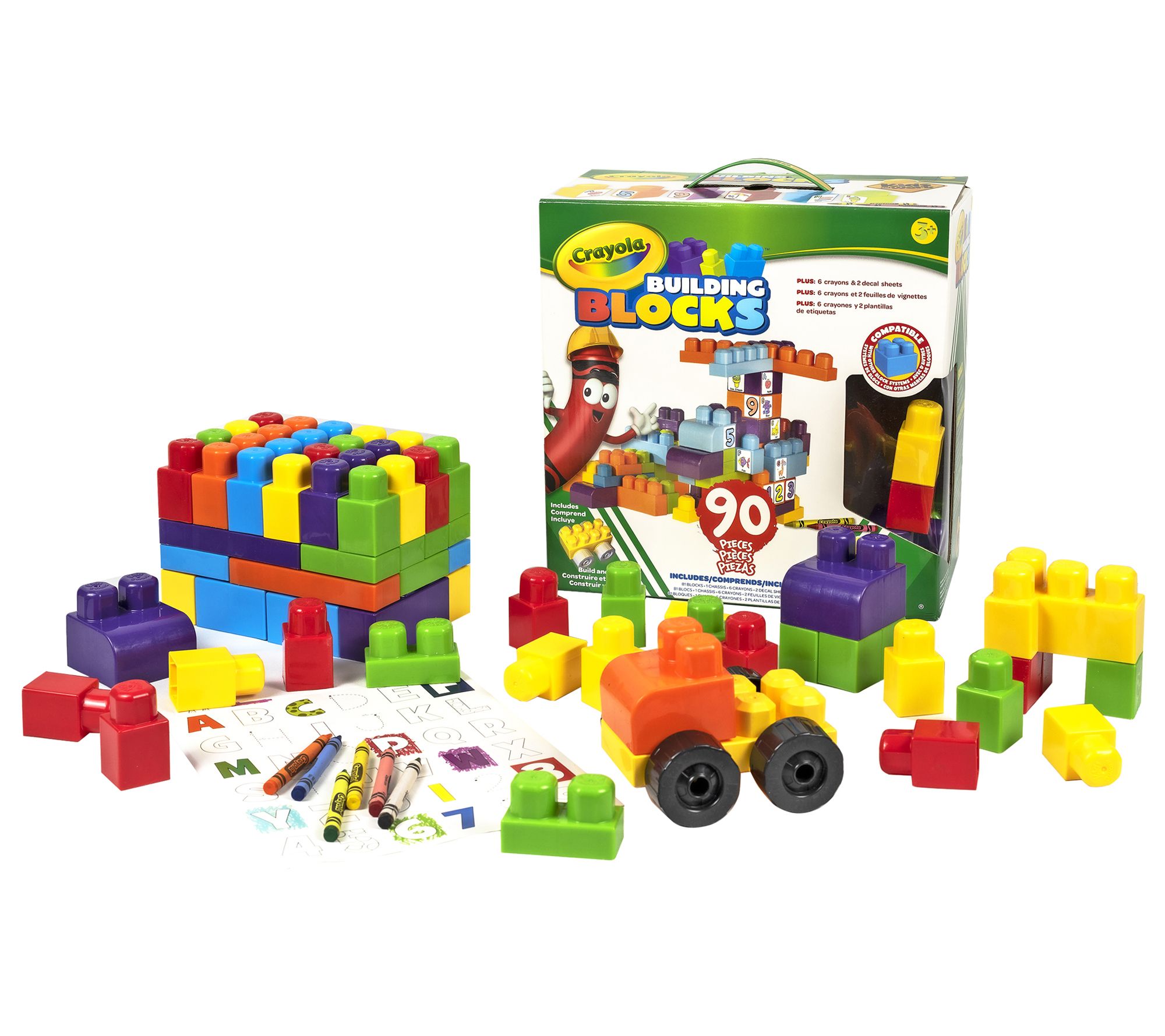 • Includes 81 blocks, chassis, six crayons, and two decal sheets