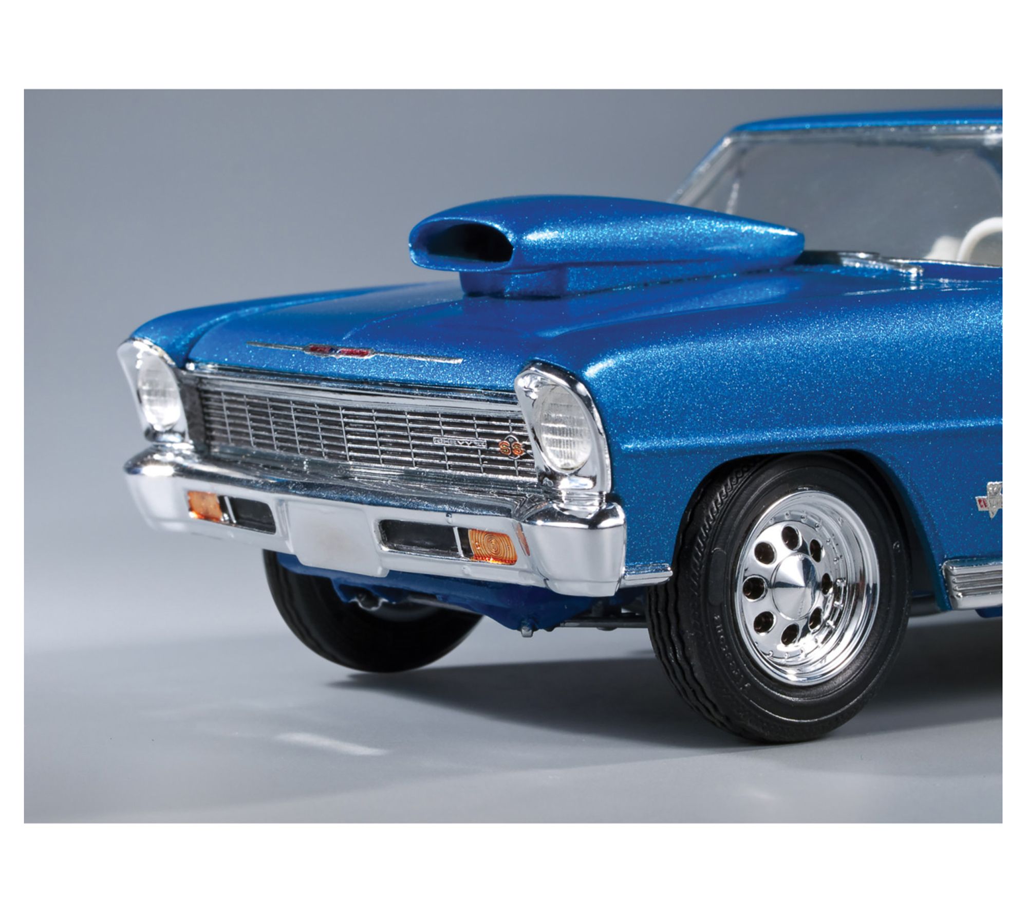 Fuel a love for classic cars and model building with the AMT: 1:25 Scale Model Kit of the 1966 Chevy Nova Pro Street. Molded in striking blue and packed with over 110 parts, this model kit lets you recreate the power and style of a muscle racer right at home. It's a fantastic way to unwind, sharpen your skills, and celebrate the enduring legacy of Chevy performance. From AMT.
