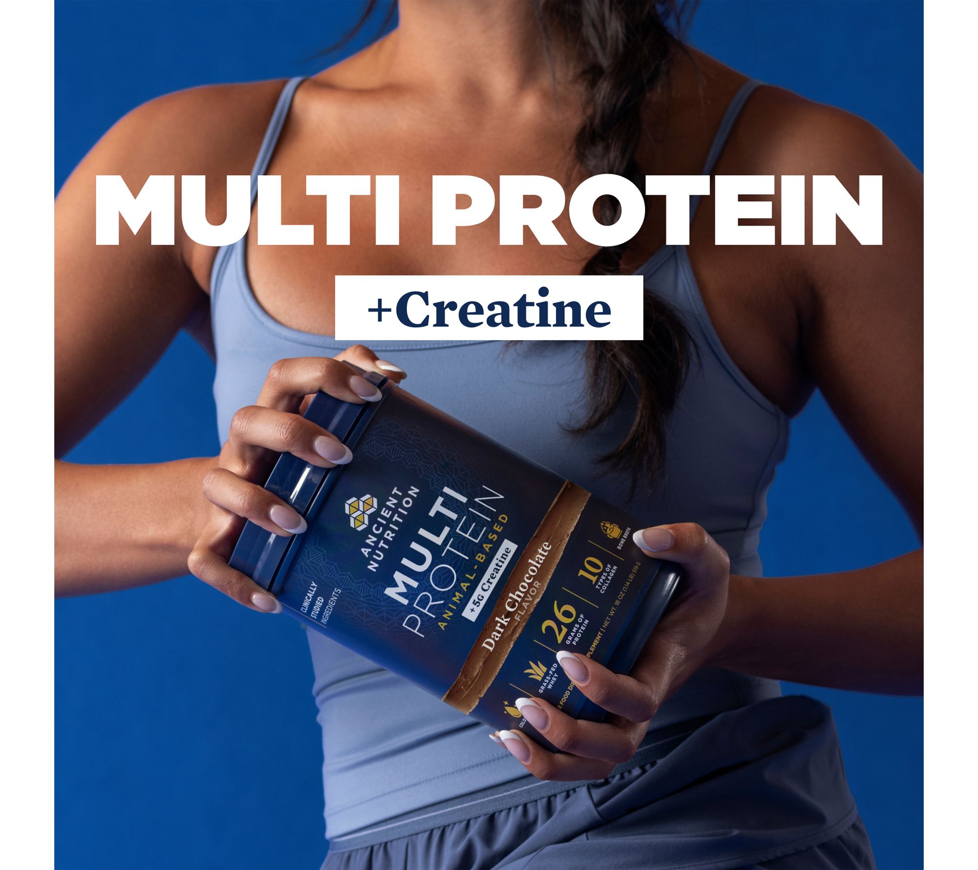 Getting enough protein is essential for maintaining muscle, joint health, and overall vitality, but it can be tough to meet those daily needs through diet alone. Good thing you have Ancient Nutrition on your side. Multi Protein Animal-Based + Creatine is a delicious protein powder that helps build muscle strength and contains three (you read that right!) different sources of collagen.