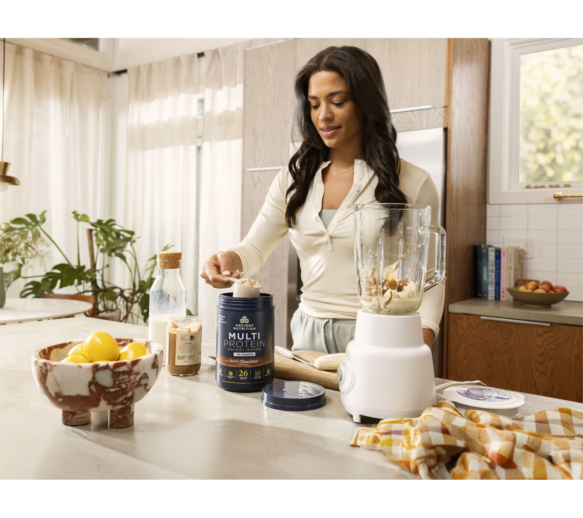 Protein plays a key role in counteracting muscle loss typically seen with aging. It's important to have different sources of protein to get a complete profile of essential amino acids and to provide more micronutrients and minerals for overall health. That's why Multi Protein Animal-Based + Creatine combines five premium animal-based protein sources (grass-fed whey, bone broth, A2/A2 milk protein, collagen peptides, and colostrum) into a single formula. It even contains a probiotic which may help support bowel function, healthy elimination, and a healthy gut microbiome. Simply add a scoop to a glass of water, a cup of milk, or your favorite morning smoothie -- it's that easy! Ancient Nutrition with modern convenience? That's what we call a winning formula. From Ancient Nutrition.