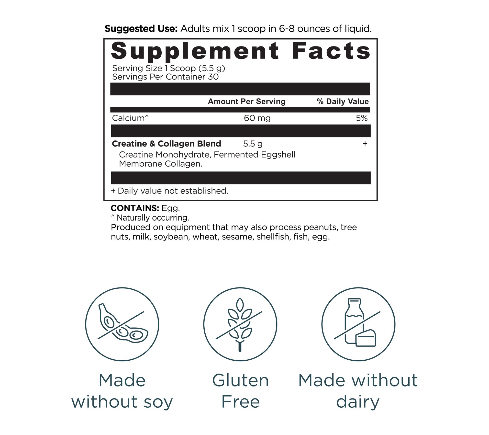 Formula combines five grams of creatine monohydrate with fermented eggshell membrane collagen