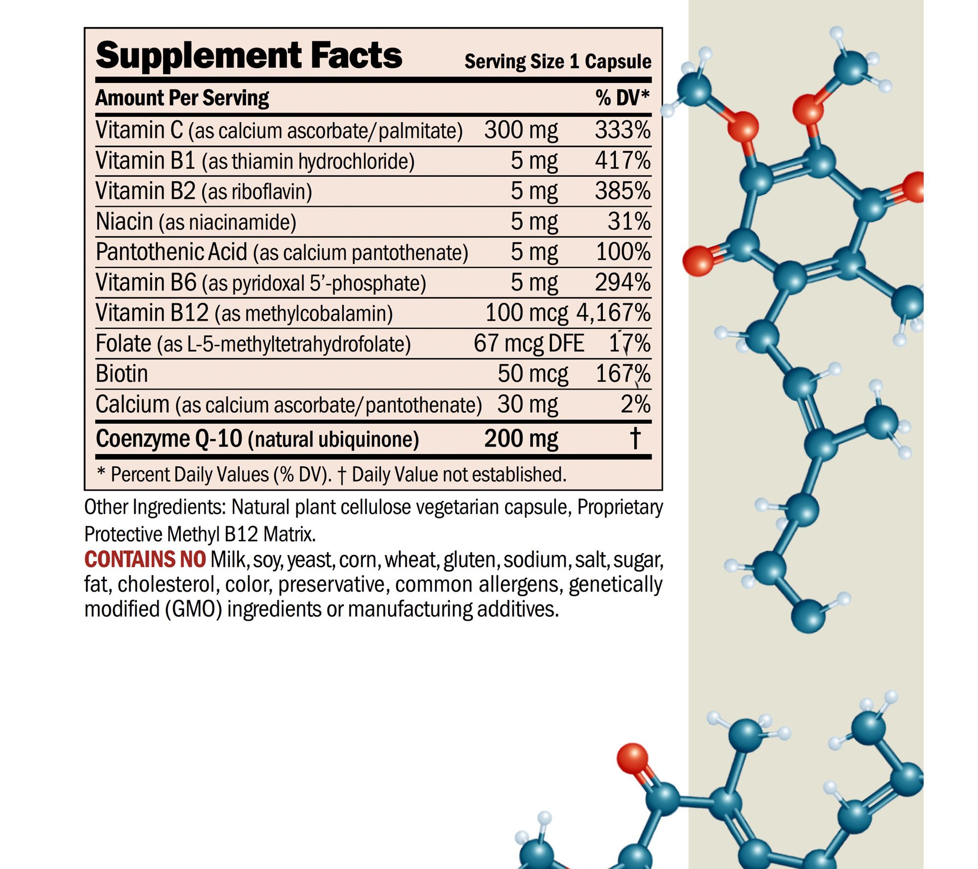 CoEnzyme Q-10 200mg is more than just the finest natural source of our body's most critical energy nutrient (CoQ10). It also provides one of the world's most sophisticated high-potency B-complex formula, including special vitamin B-12 (methylcobalamin), pyridoxal 5'-phosphate form of B6, as well as a unique methyl folate form of folic acid.