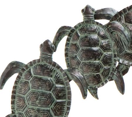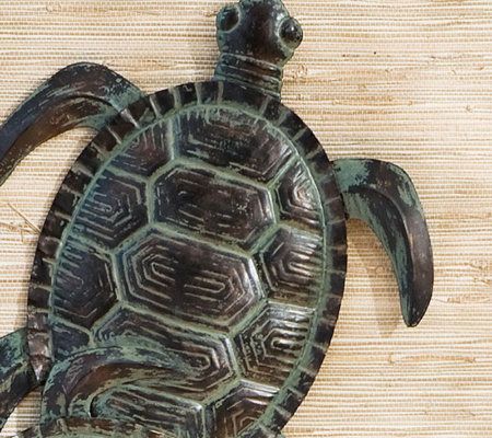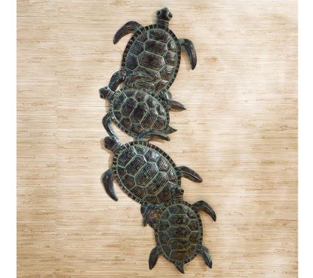 Turtle time. These half-shelled sea creatures will look friendly and inviting on your wall, with their beautiful, handpainted green hues. The wall art hangs easily, adding a touch of ocean life to your home. From SEI.