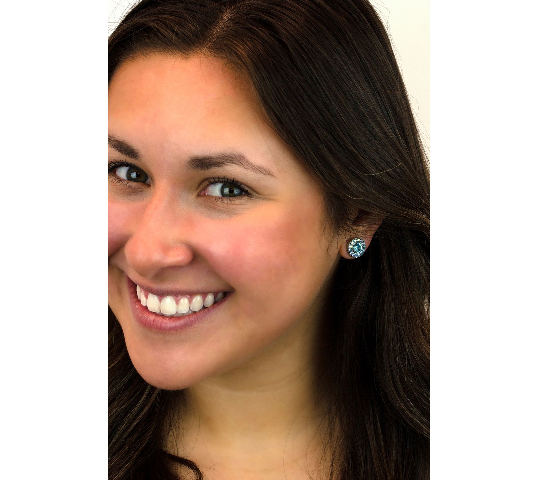 Anne Koplik Aqua Crystal Halo Button Earrings