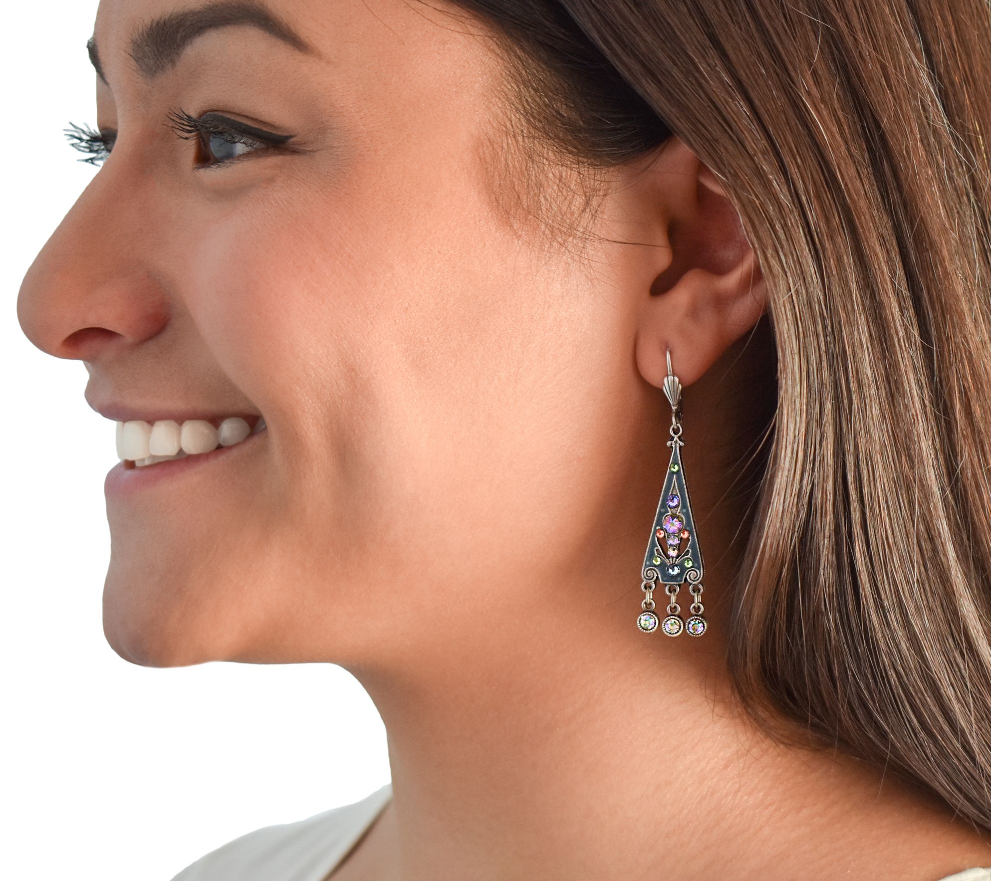 Bring a little denim-blue bling to your look with these art deco-style earrings. From Anne Koplik Designs.