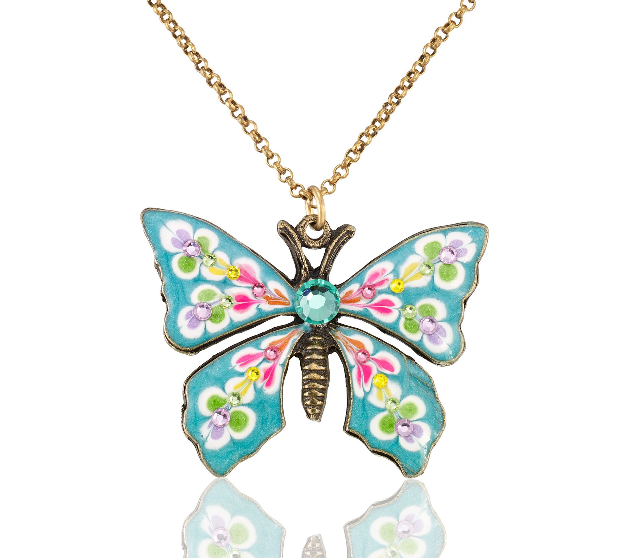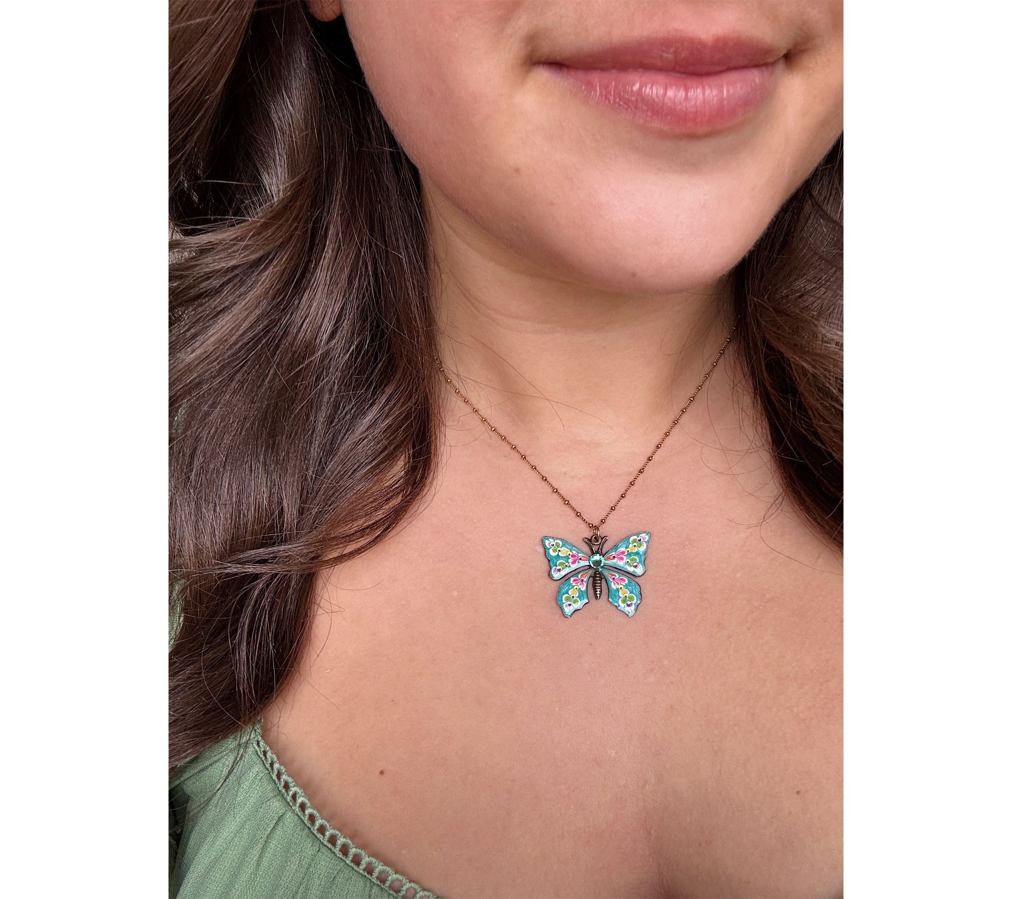A burst of color and sparkling shimmer brings a playful, feminine vibe to any look with this butterfly pendant necklace. Whether you're brightening up a casual outfit or adding a fun accent to an evening out, vibrant enamel and dazzling crystal accents offer endless styling possibilities. From Anne Koplik.