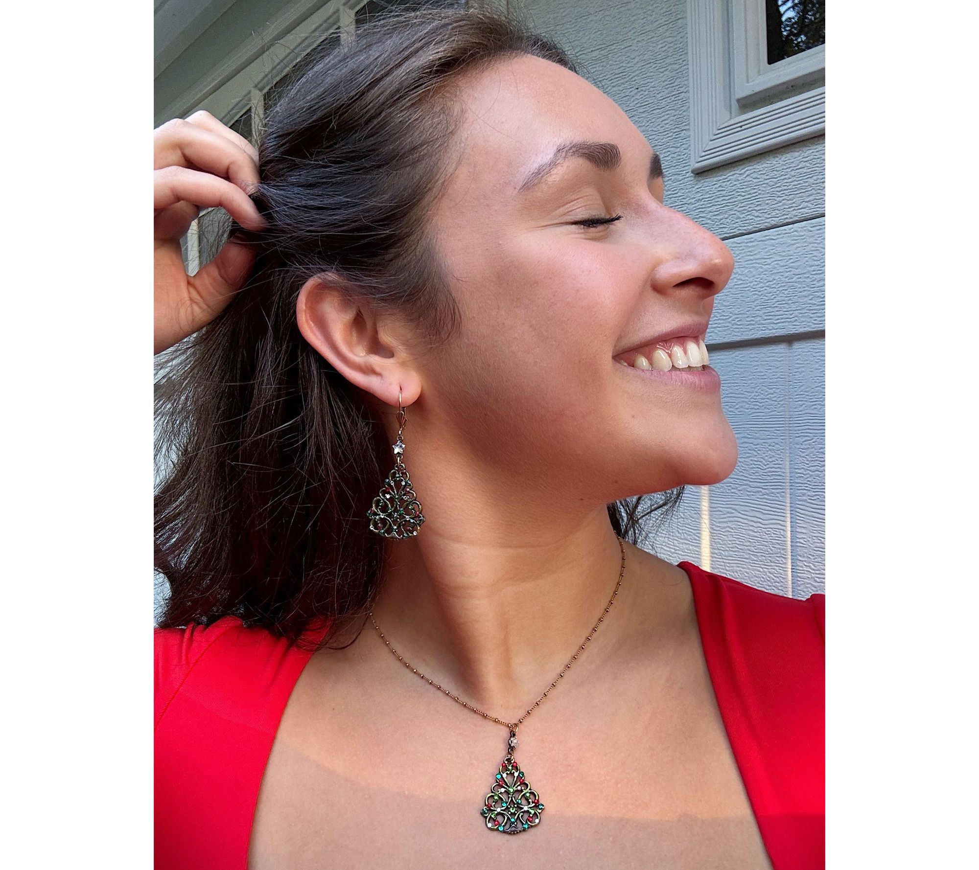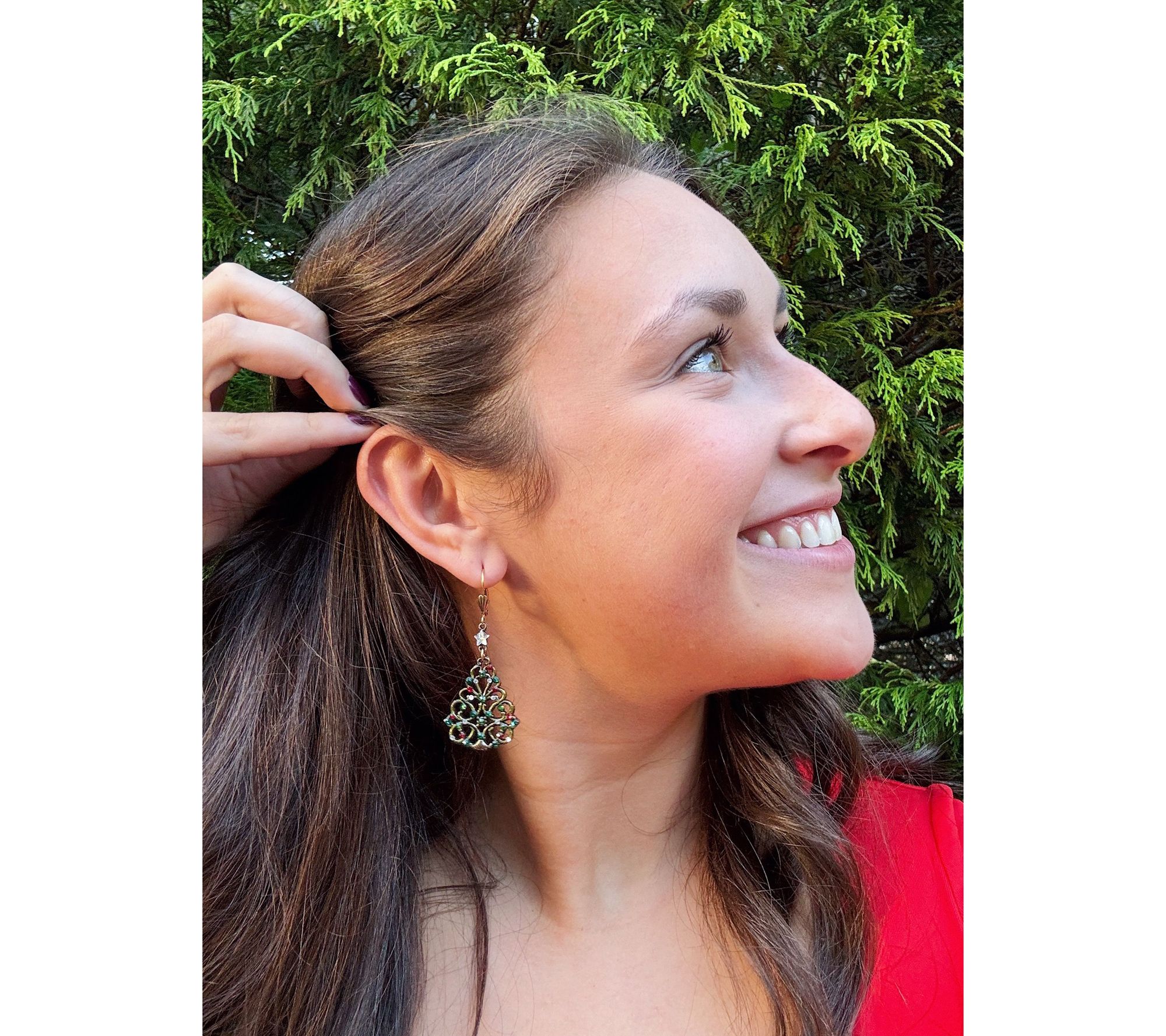 Anne Koplik Crystal Christmas Tree Dangle Earrings