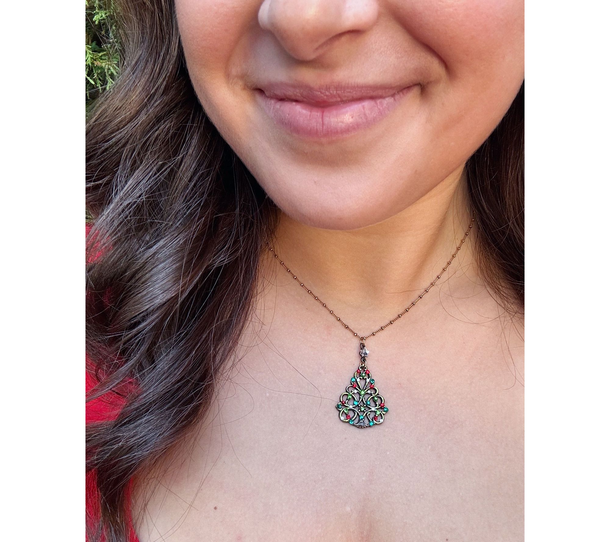 Anne Koplik Crystal Christmas Tree Pendant w/ Chain