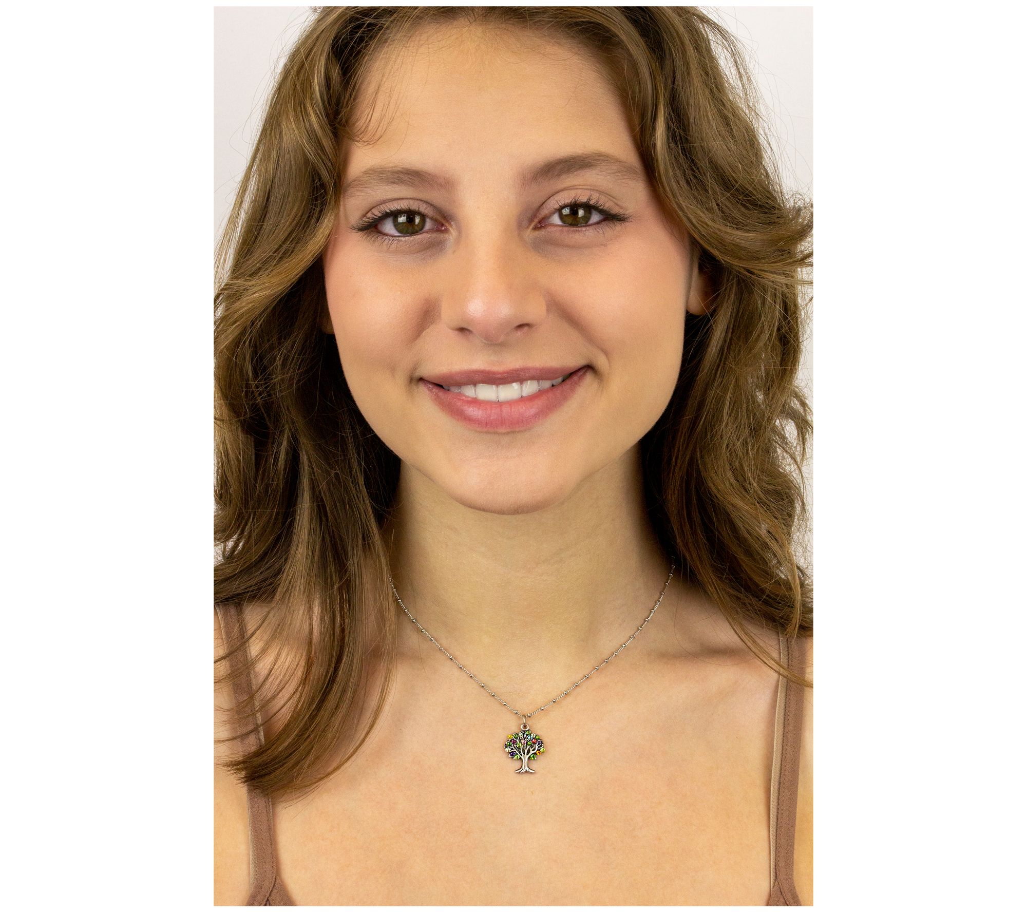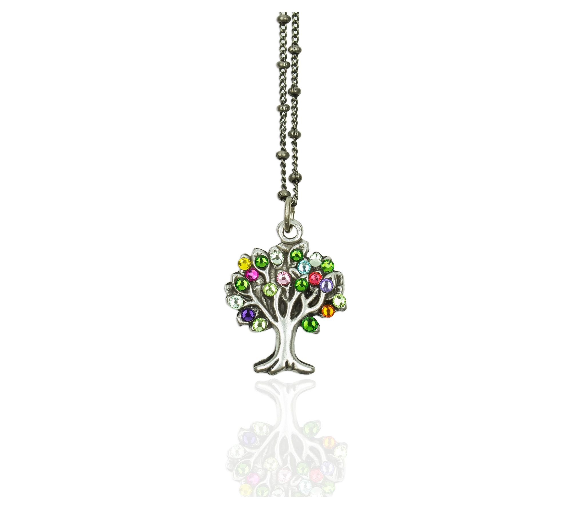 Honor the beauty of life with this sparkling Tree of Life pendant that showcases a rainbow of crystals and hangs from a station chain. From Anne Koplik.