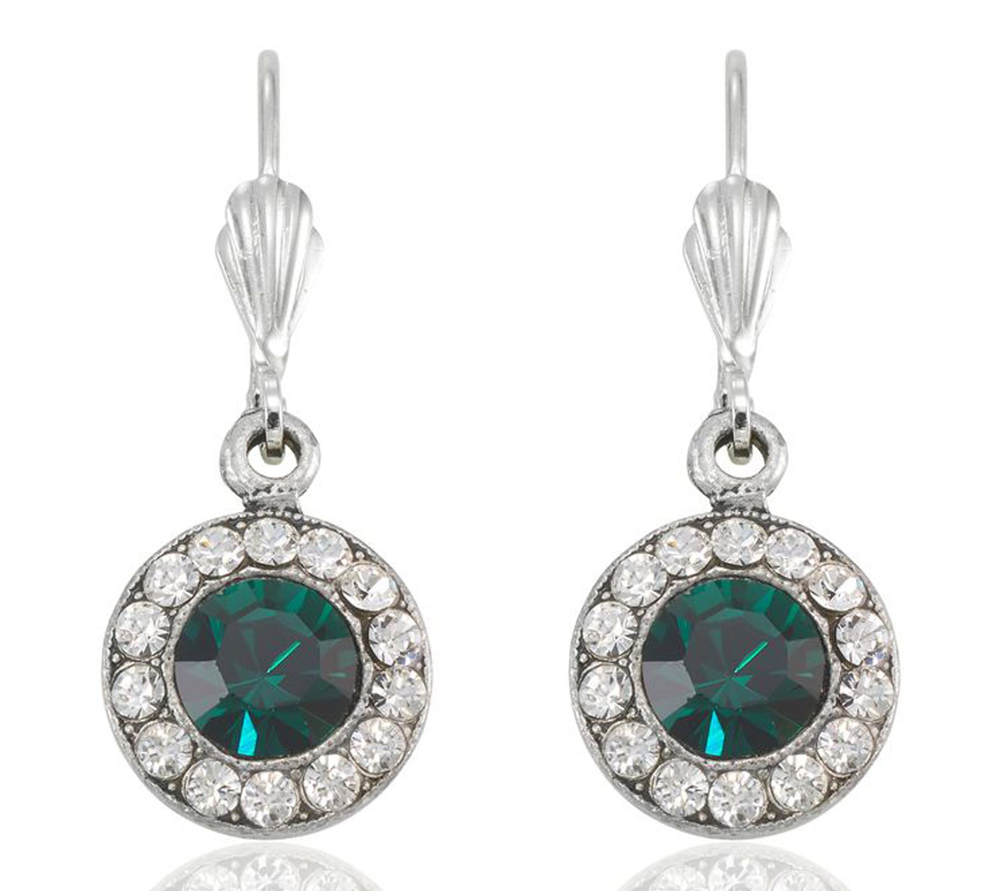 Anne Koplik Emerald Green & Clear Crystal HaloEarrings