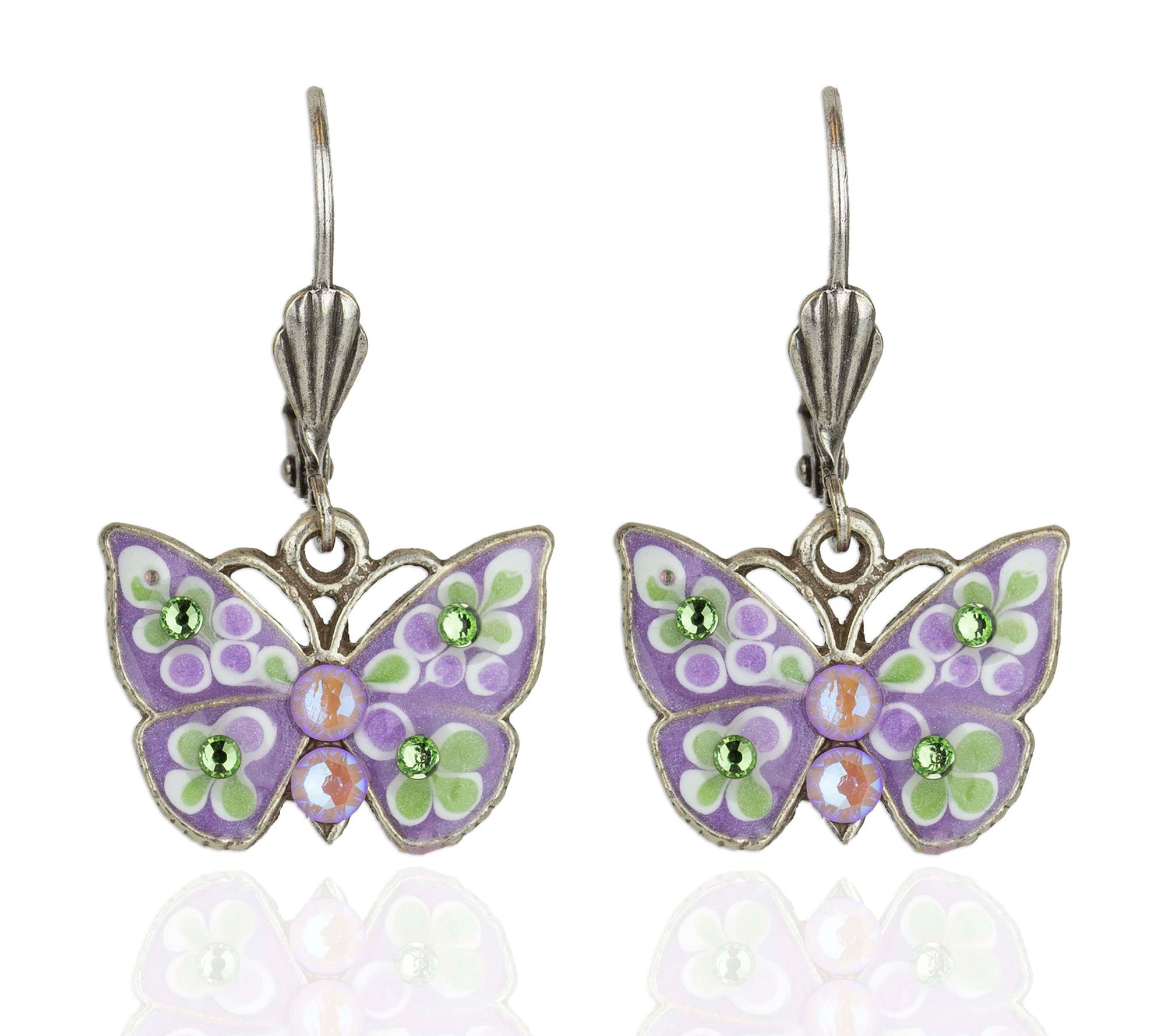 Anne Koplik Lavender Enamel & Crystal Butt erflEarrings