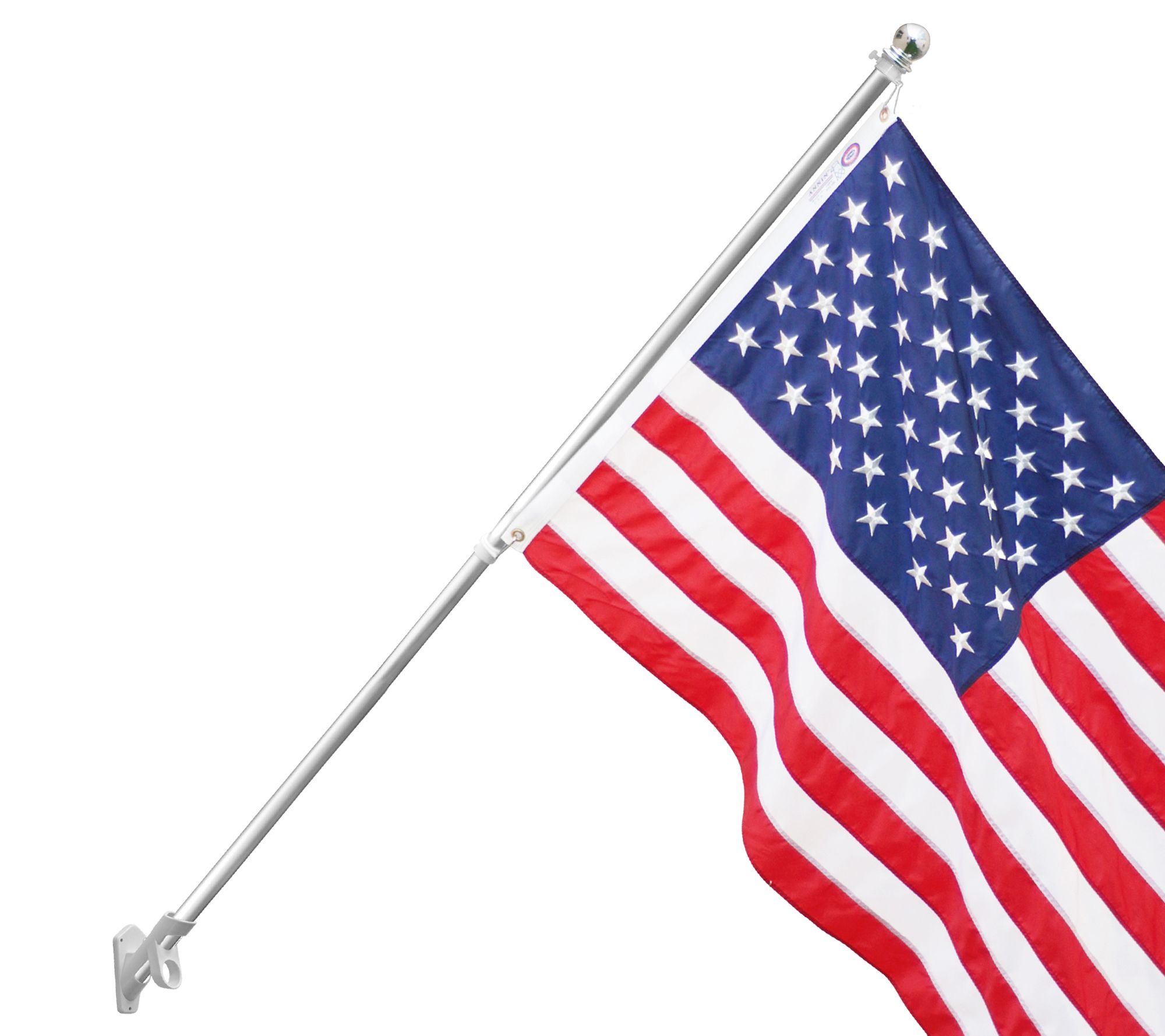 Three cheers for the red, white, and blue! And three cheers to Annin Flagmakers for providing us with a sturdy flag pole to fly our stars and stripes. Constructed out of aluminum, secured with the included wall mount, and topped with a classic round ornament, it ensures patriotism, team spirit, or military allegiance is displayed proudly day after day. From Annin Flagmakers.