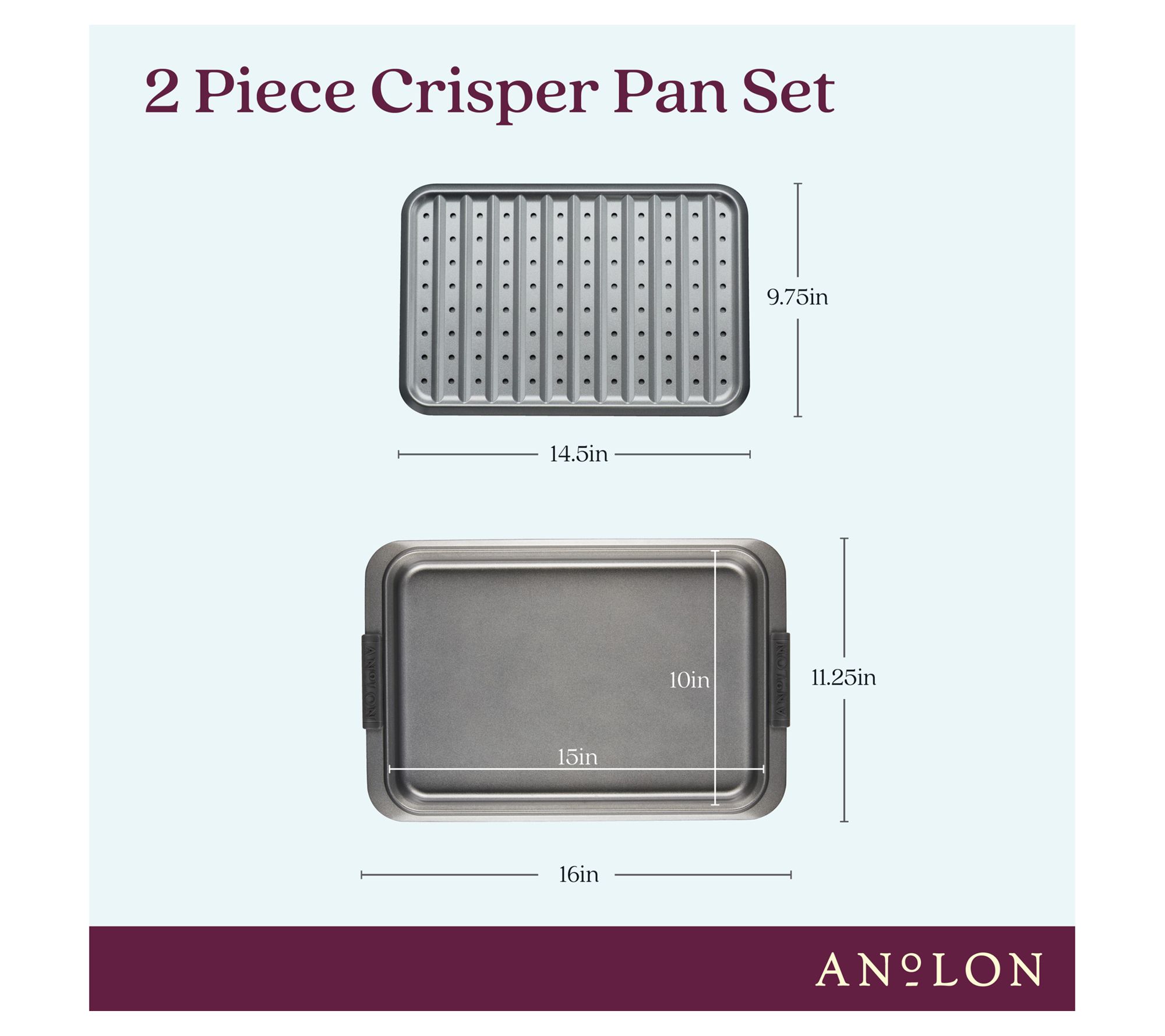 Experience exceptional baking with the Anolon Advanced Bakeware nonstick sheet pan and crisper set. Perfect for dedicated bakers, pizza lovers, and french fry fanatics, this versatile set is crafted from heavy-gauge steel for even heat distribution and is oven safe up to 450F. From Anolon.