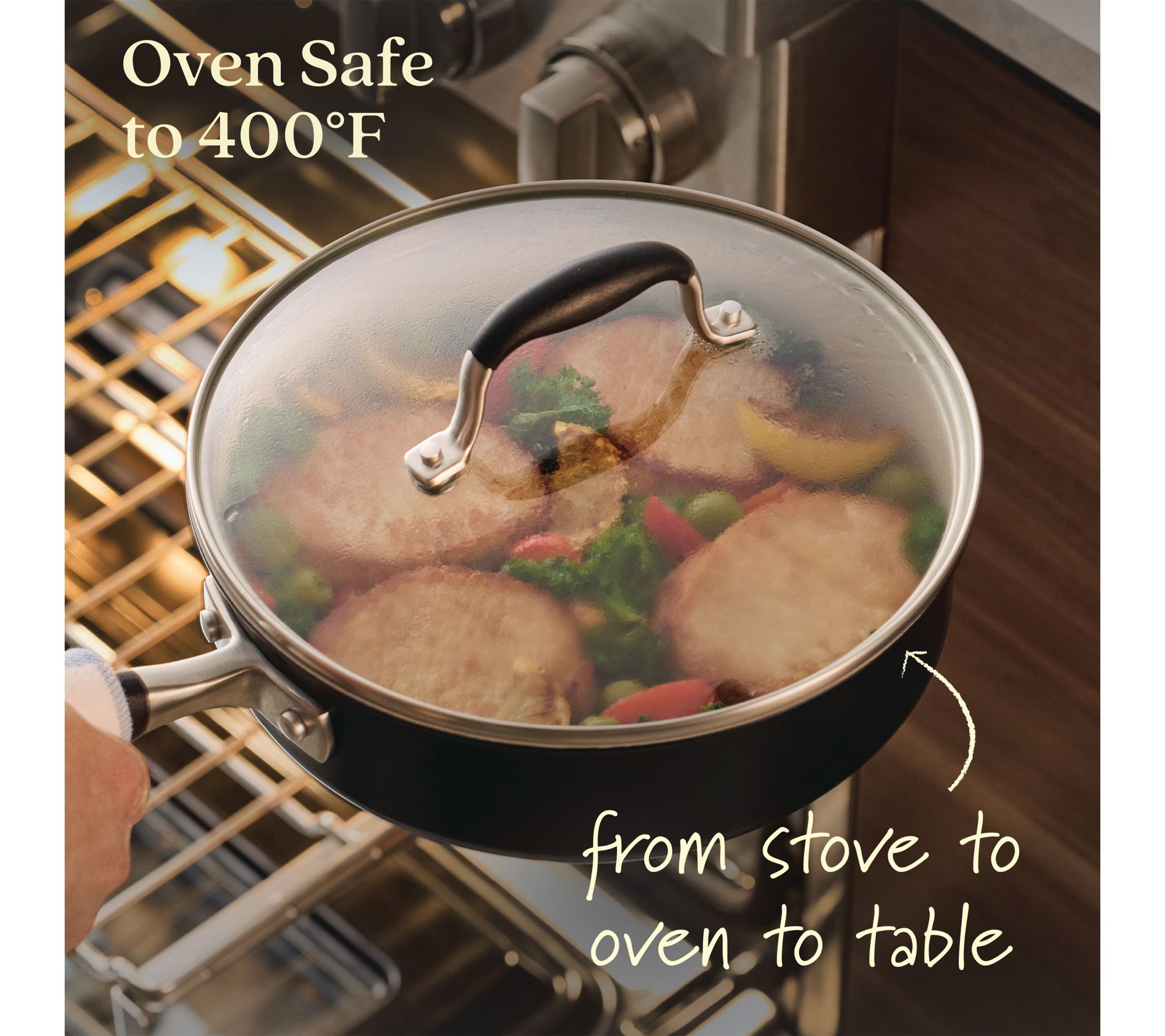 From quick weeknight dinners to festive gatherings, this nonstick cookware set makes it easy to tackle every recipe with confidence. Thoughtfully designed for hassle-free cooking and cleanup, each pan delivers even heating and effortless food release, so you can enjoy every meal and spend less time at the sink. From Anolon.