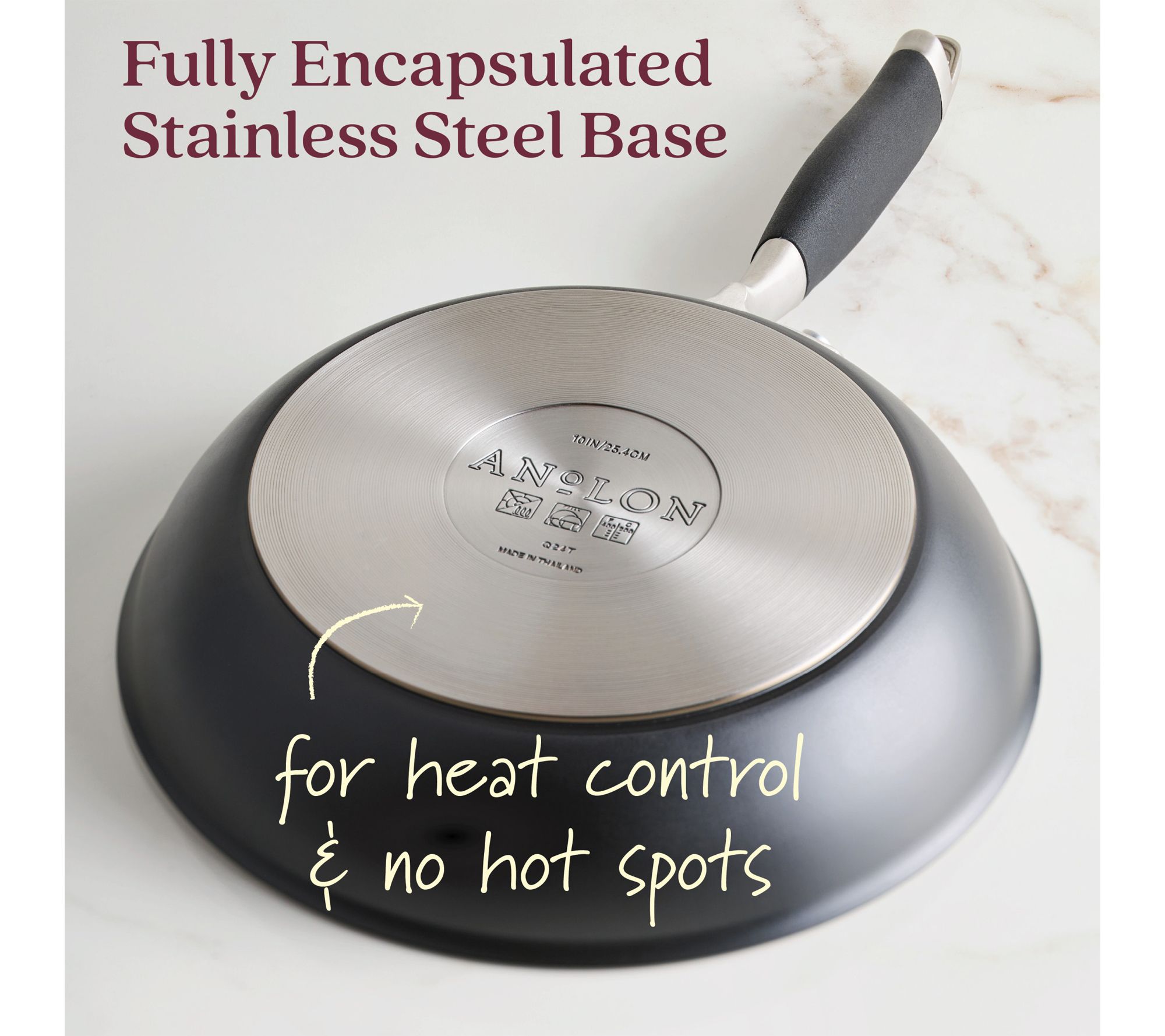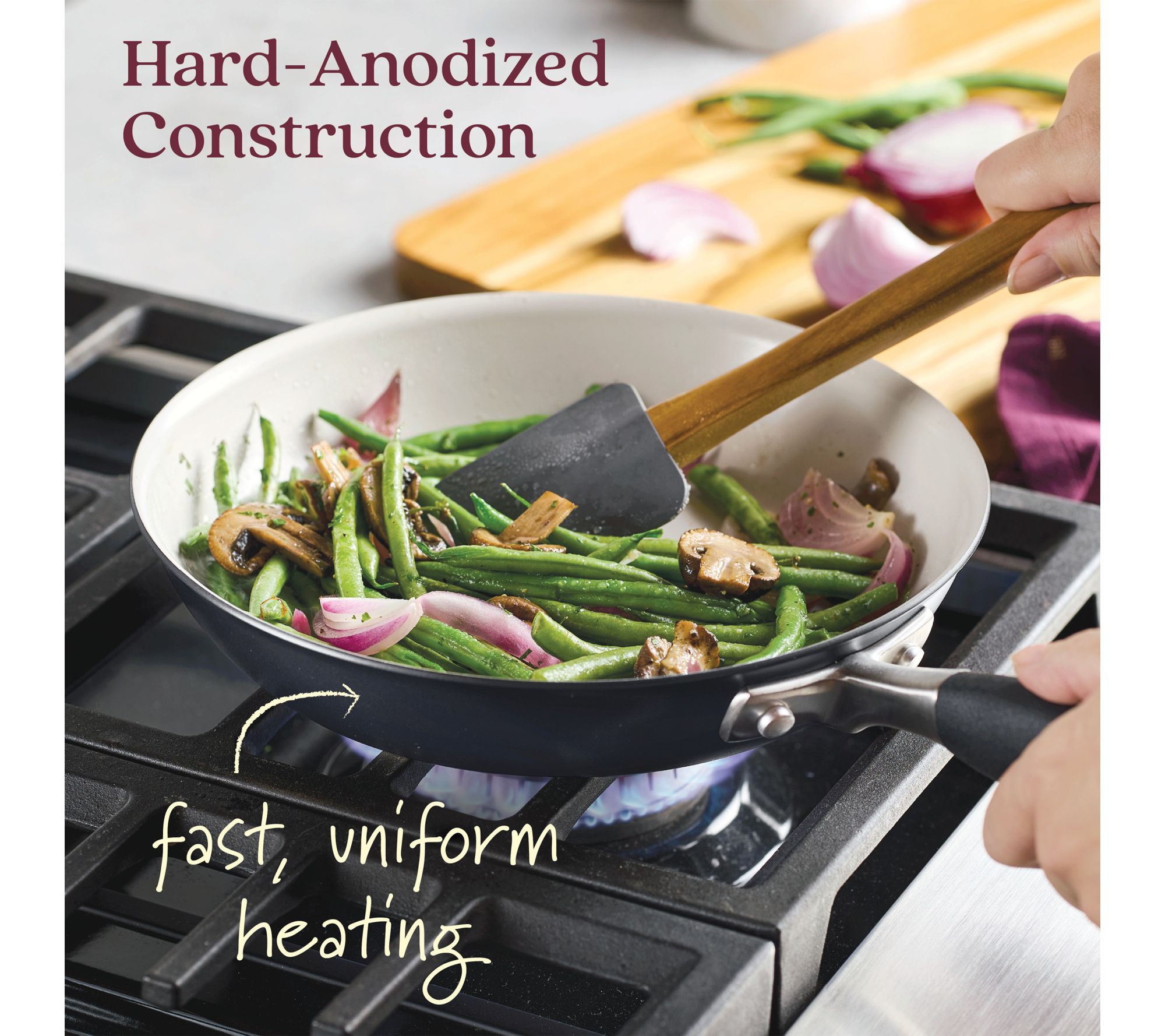 Bring inspiration to your kitchen with this two-piece frying pan set that makes quick work of weekday meals or weekend brunches. Sturdy hard-anodized aluminum construction offers reliable performance for searing, sauteing, and frying, while the nonstick surface lets you serve up delicious creations with ease. From Anolon.